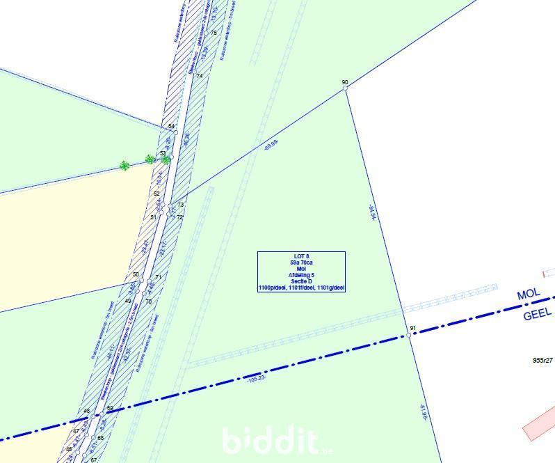 Une parcelle de forêt située à Mol, cinquième division, dans la région « Stocktscheheyde agter de Saese Hoeven », cadastrée selon le cadastre actuel, section D, partie des numéros 1100PP0000, 1101FP0000 et 1101GP0000, avec numéro d'identification de parcelle réservé 1178BP0000, d'une superficie mesurée de 59 ares 70 centiares. P score: A