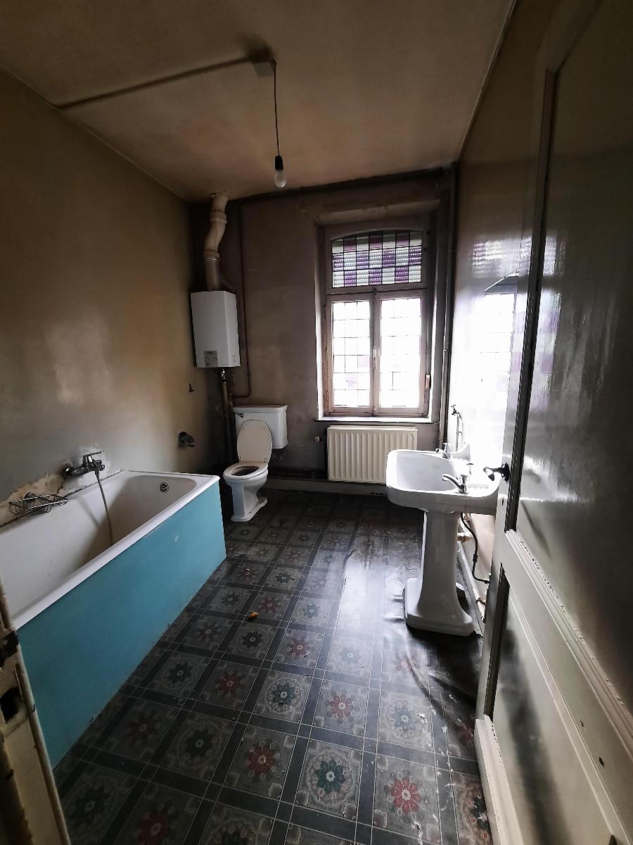 1er étage : Palier, deux grandes chambres à coucher, salle de bain avec lavabo, baignoire et wc ;