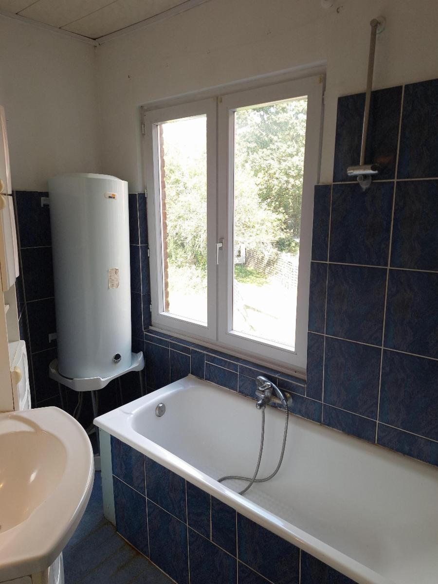 Au 1ère étage : hall de nuit ; salle de bains (donnant sur l’arrière) avec bain, lavabo et boiler ; chambre arrière de 13,5m² ; chambre avant de 17m²
