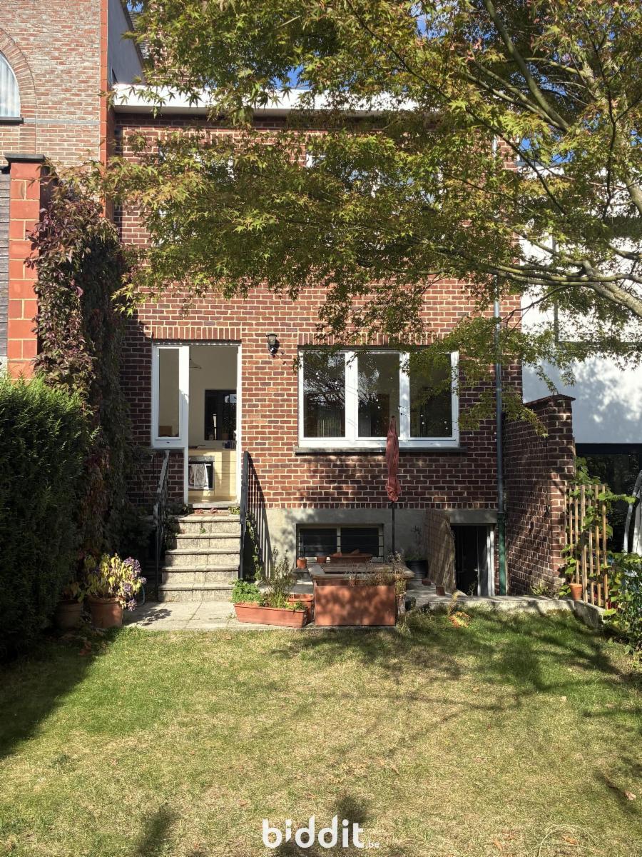 sise Windmolenberg 12 pour une superficie de 1a 72ca, dans un quartier résidentiel calme. Comprenant au sous-sol : caves, garage, buanderie - au rez : hall, WC, séjour, salle à manger, cuisine et jardin - au 1er étage : 3 chambres, WC, salle de bains avec WC - Combles : grenier. R.c.n.i. 1.988€. Sup. hab. (suivant PEB) : 153m². Châssis PVC double vitrage, chauffage au gaz. À proximité des commerces, métro, bus et trams. Libre à l’acte. PEB E-/256. Contr. électr. conforme de 2017 mais travaux électriques mineurs réalisés depuis. Visites sans rdv : mercredis 14-21-28/1 de 15-17h, samedis 17-24/1 et 7/2 de 14-16h et vendredi 30/1 de 14-16h. Veuillez consulter les conditions de vente sur BIDDIT.