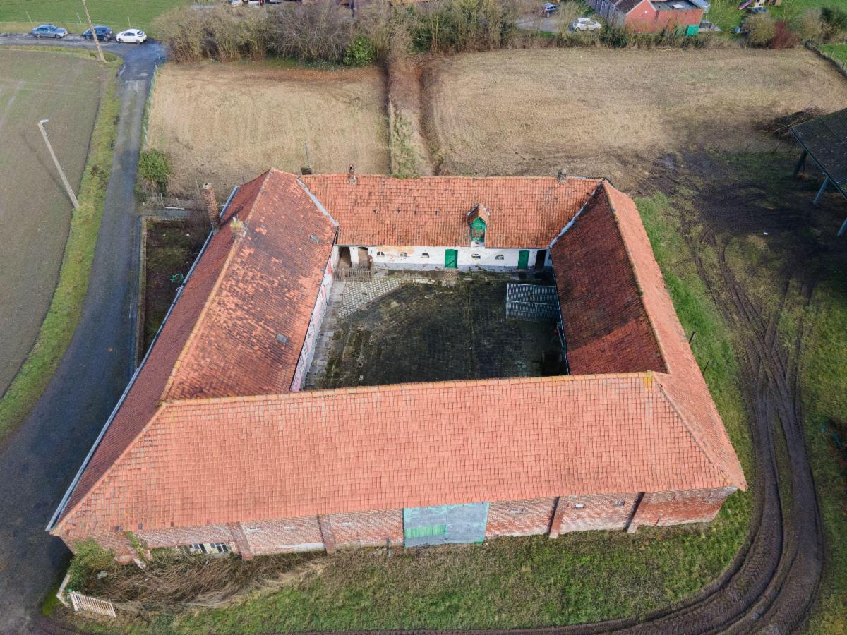 Ancienne ferme au carré située au calme et avec vue sur la campagne sur +- 1 hectaure, à rénover entièrement et comprenant hangar et bâtiment rural