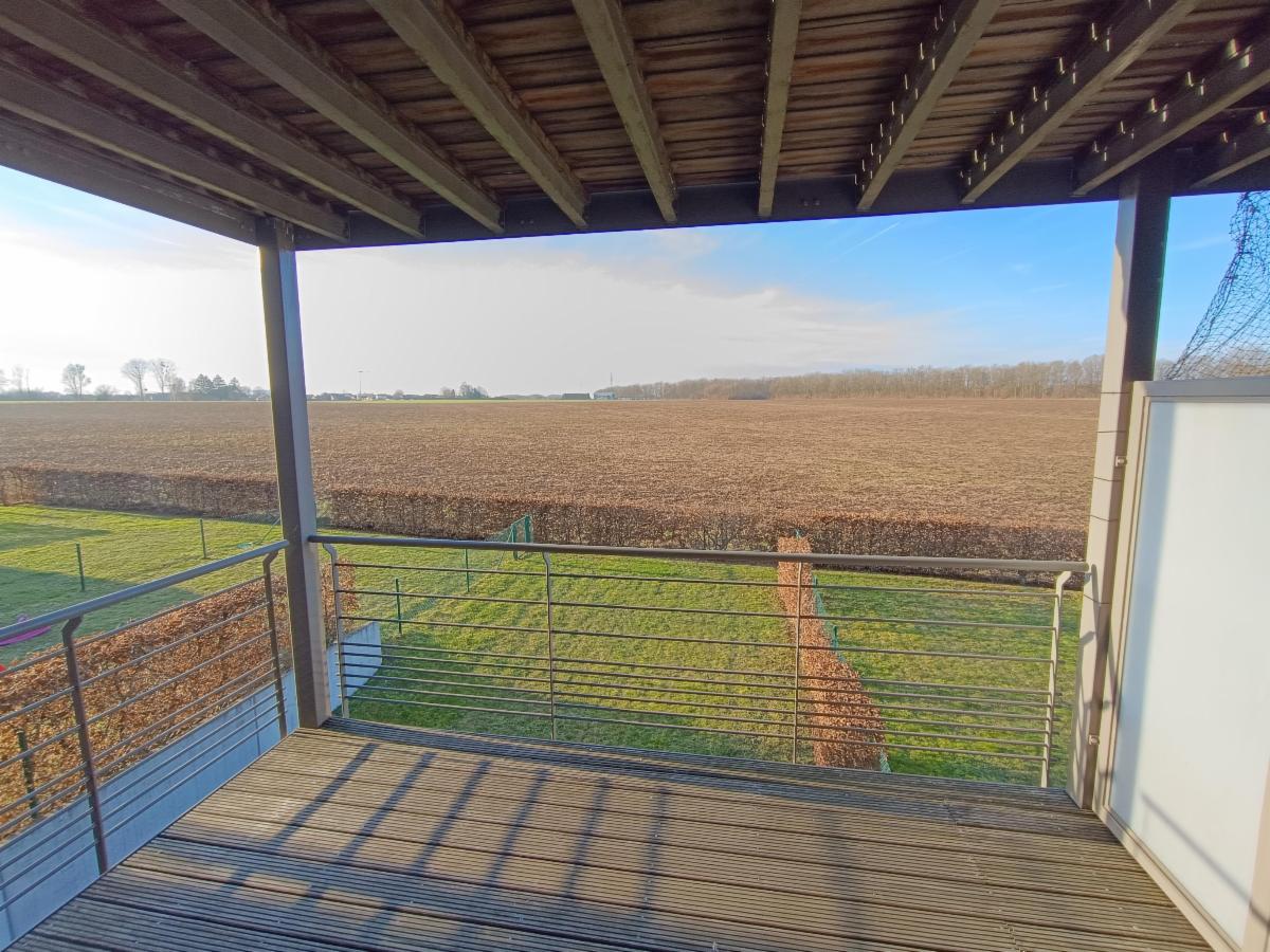 Il se compose: un hall d'entrée - un séjour +/- 25m² donnant sur la terrasse de 10m² - une cuisine équipée ouverte sur le séjour - une salle de bain - un wc séparé - deux chambres donnant sur le parking - une buanderie et un local technique