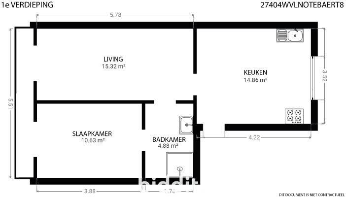 Appartement n° 3 au 1er étage, comprenant : salon, cuisine, WC, chambre avec balcon. BPA 17 Grote Markt ; non conforme au plan d'urbanisme ; disponible moyennant paiement du prix d'achat et des frais. Indice P & G : D. G score: D P score: D