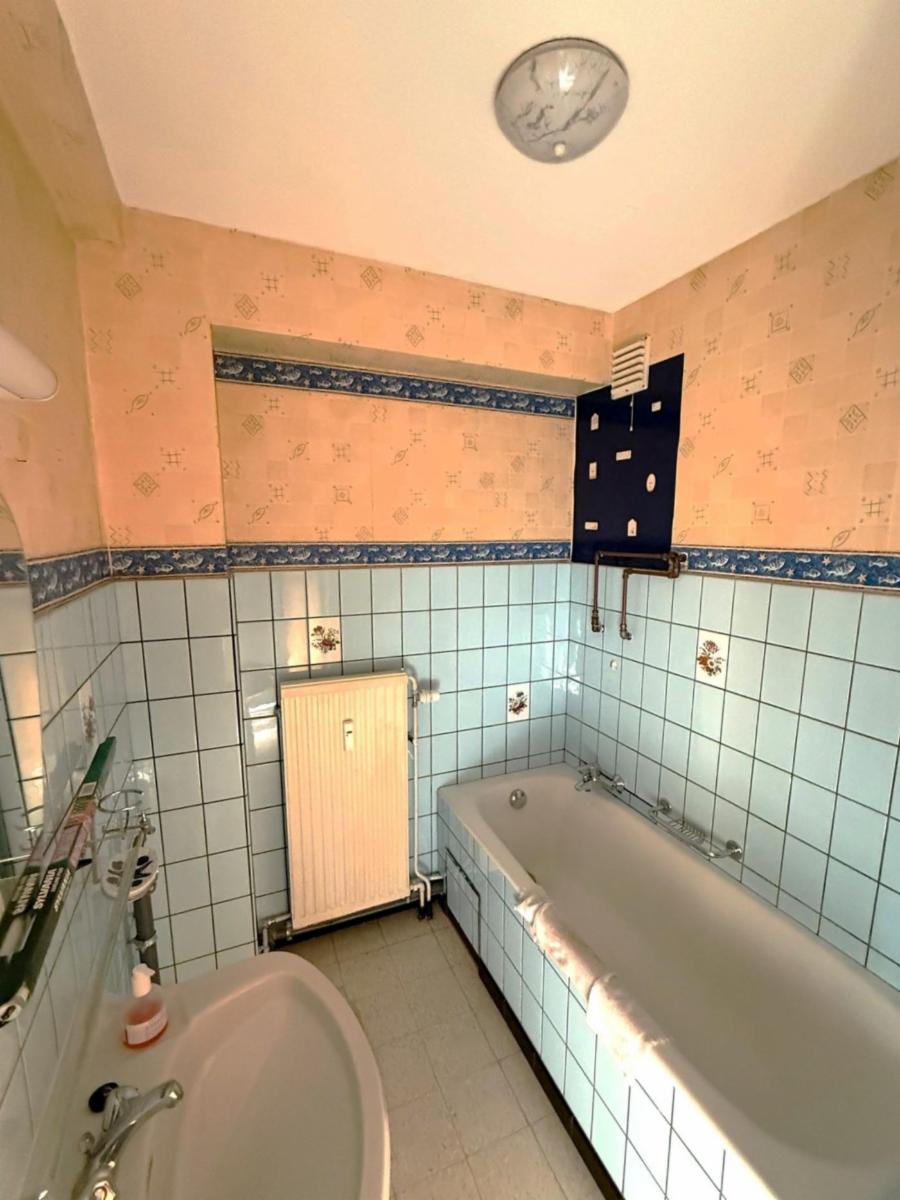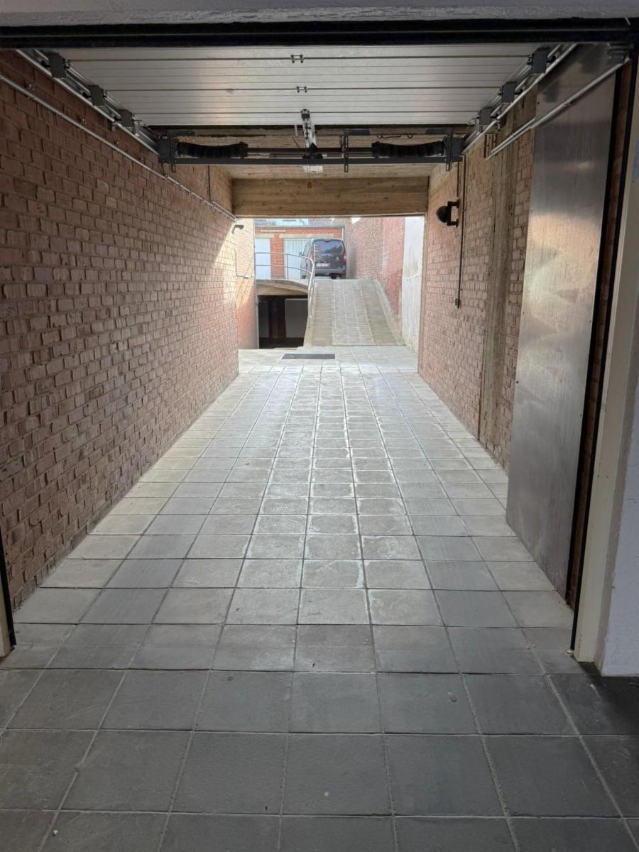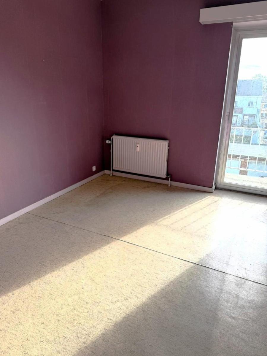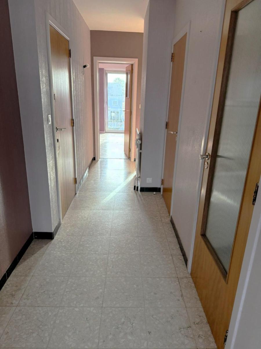 Composition de l'appartement : Hall d'entrée, living, cuisine non équipée, 2 chambres dont 1 avec balcon, SDB (baignoire, lavabo simple), wc, buanderie - Commodités : Egout, eau de ville, gaz de ville, électricité, téléphone, TV distribution, Châssis en aluminium - double vitrage - chauffage central au mazout - radiateurs avec des calorimètres - Adoucisseur d'eau - Dépendances : cave, garage avec accès à rue via porte électrique (actuellement loué) - Divers : charges provisionnelles mensuelles : 100 € (nettoyage, eau, électricité, syndic, extincteurs, ascenseur)