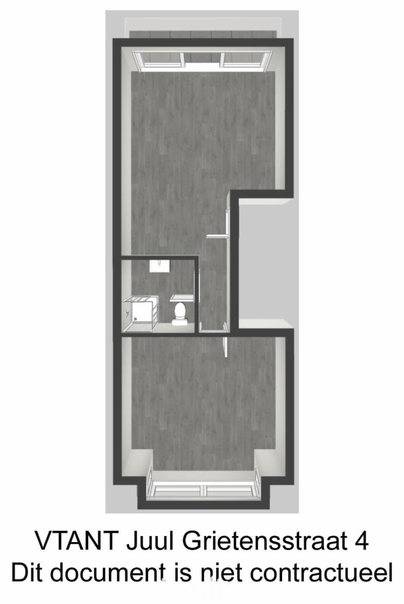 Un appartement situé au premier étage avec cave en sous-sol, situé à 2140 Anvers, Juul Grietensstraat 4, revenu cadastral (RC) €512,00.