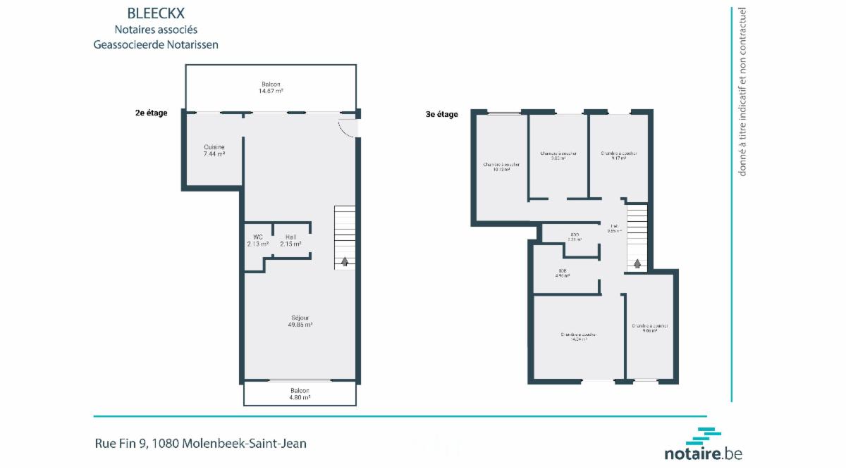 Sis rue Fin 9 dans un immeuble récent (2008). Sup. hab. +/- 152 m². Comprenant au 1e ét. : séjour, cuisine, terrasse à l’arrière, wc, salon, terrasse à l’avant, escalier vers 2e – 2e ét. : 5 chambres, salle de douche, salle de bain, wc. R.c.n.i. 1.245€. Charges communes +/- 167€/m. Conditions d’accès : max. de revenus bruts autorisés pour l’achat (su AER à transmettre au notaire avant l’adjudication) voir cahier des charges. Libre d’occupation. R.U. 16/12/25 : logement. PEB D+, chaudière commune au gaz + panneaux solaires (pour eau chaude) – système double flux. Visites sans rendez-vous (àpd 28/1) : lundi de 11-13h et mercredi de 14-16h.