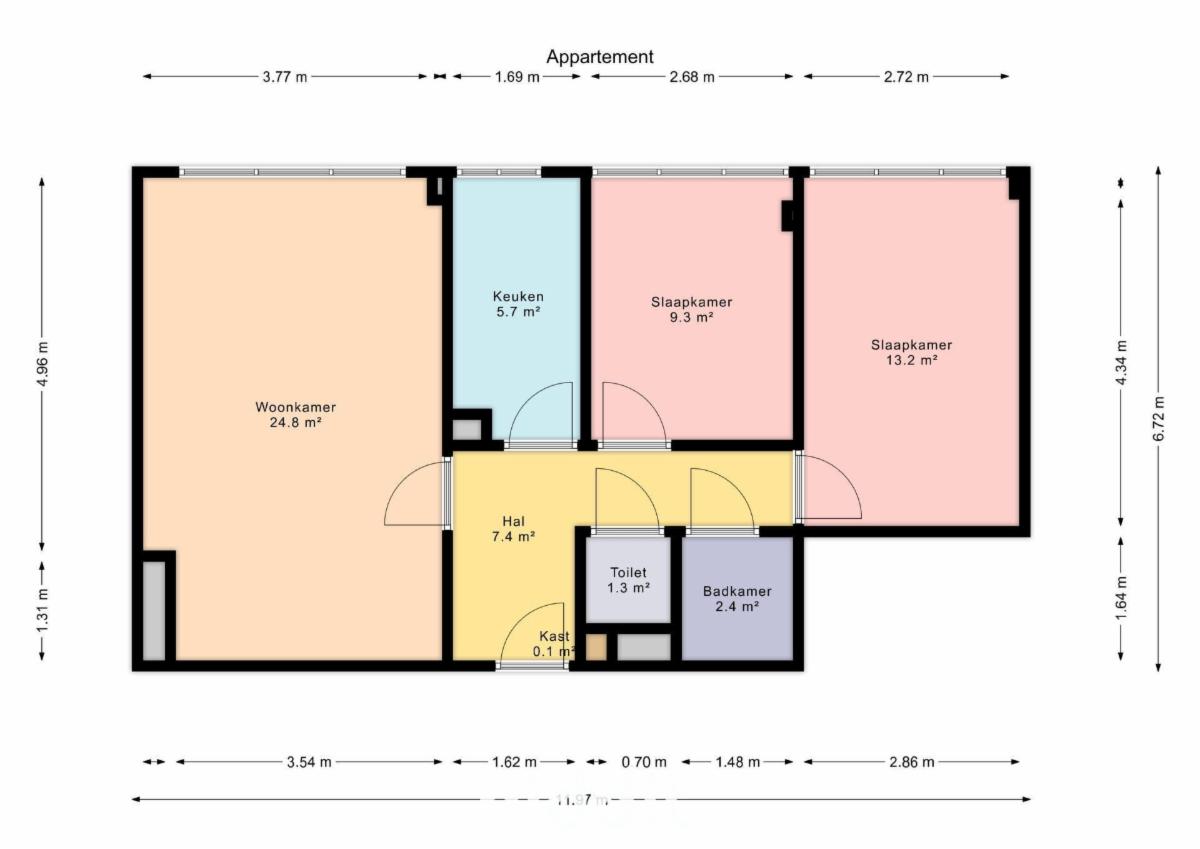 Deux chambres avec armoires intégrés. Cuisine entièrement équipée. Une salle de bains avec baignoire et douche à main.