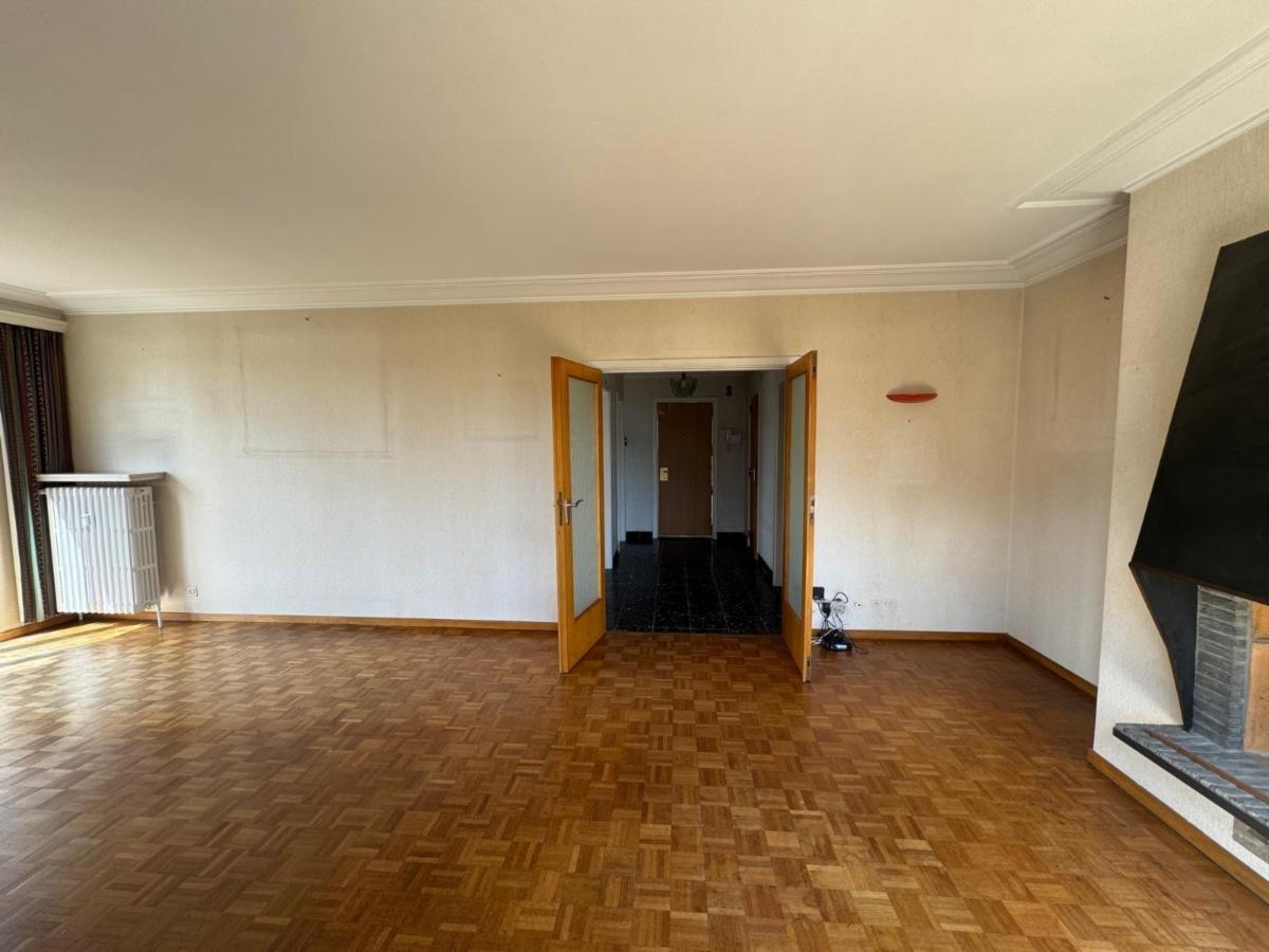 Appartement très lumineux comprenant trois chambres situé au quatrième étage, avec double vitrage (PEB C), et cave au sous-sol. Surface brute de 117 m2 d'après le certificat PEB. Appartement très bien orienté, soleil toute la journée, très beau living, belles vues. L'immeuble dispose d'un local vélos et d'un local poussettes en parties communes. Quartier calme facilement accessible près de l'OTAN et accès autoroutier facile, près des écoles et transports en commun (trams, bus, trains). Clubs sportifs à proximité. A rafraîchir. Visites sur RDV.