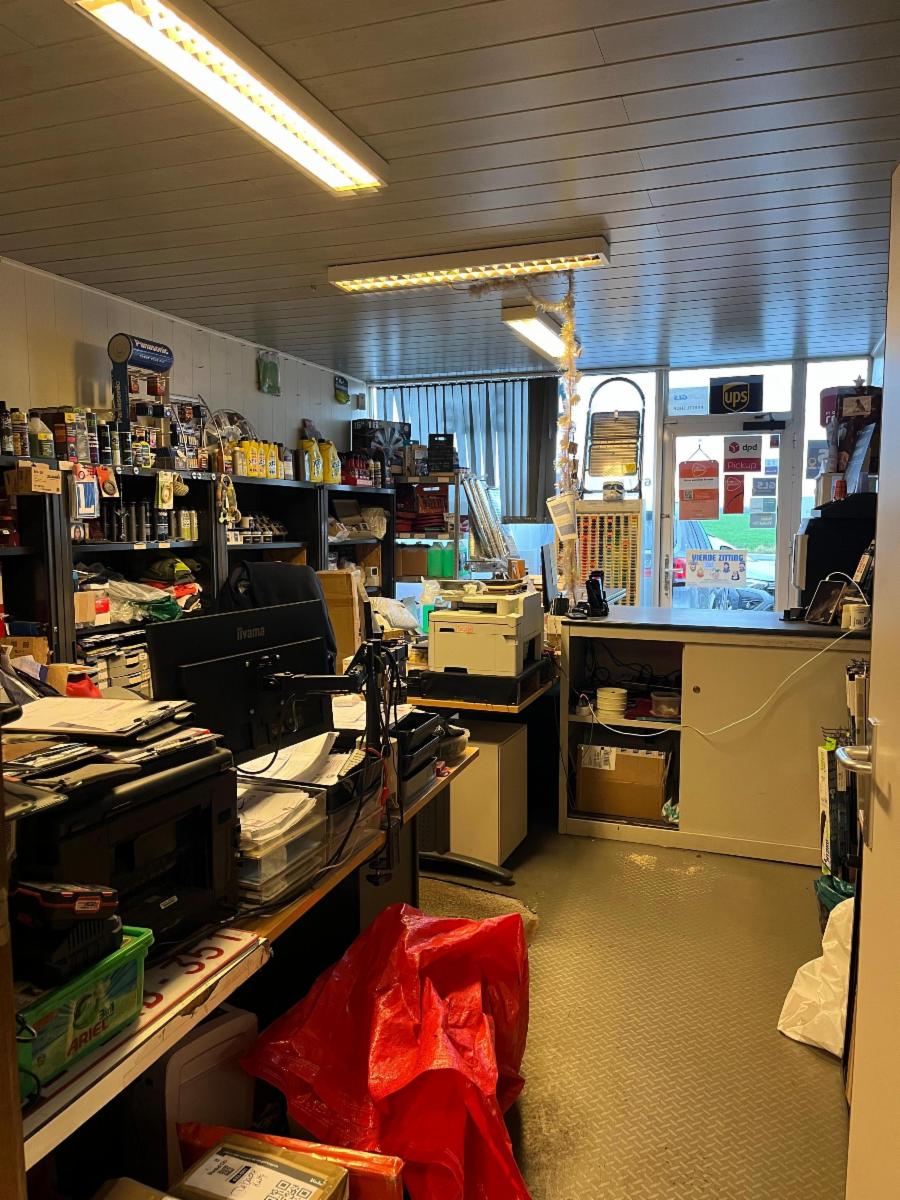 Une librairie (en location) avec une réserve, un WC avec évier et un étage; une surface commerciale; un garage automobile (en location) avec partie bureau et WC; un grand entrepôt avec partie bureau et WC; une station-service; un vaste parking et de 4 appartements à rénover (libre d'occupation).