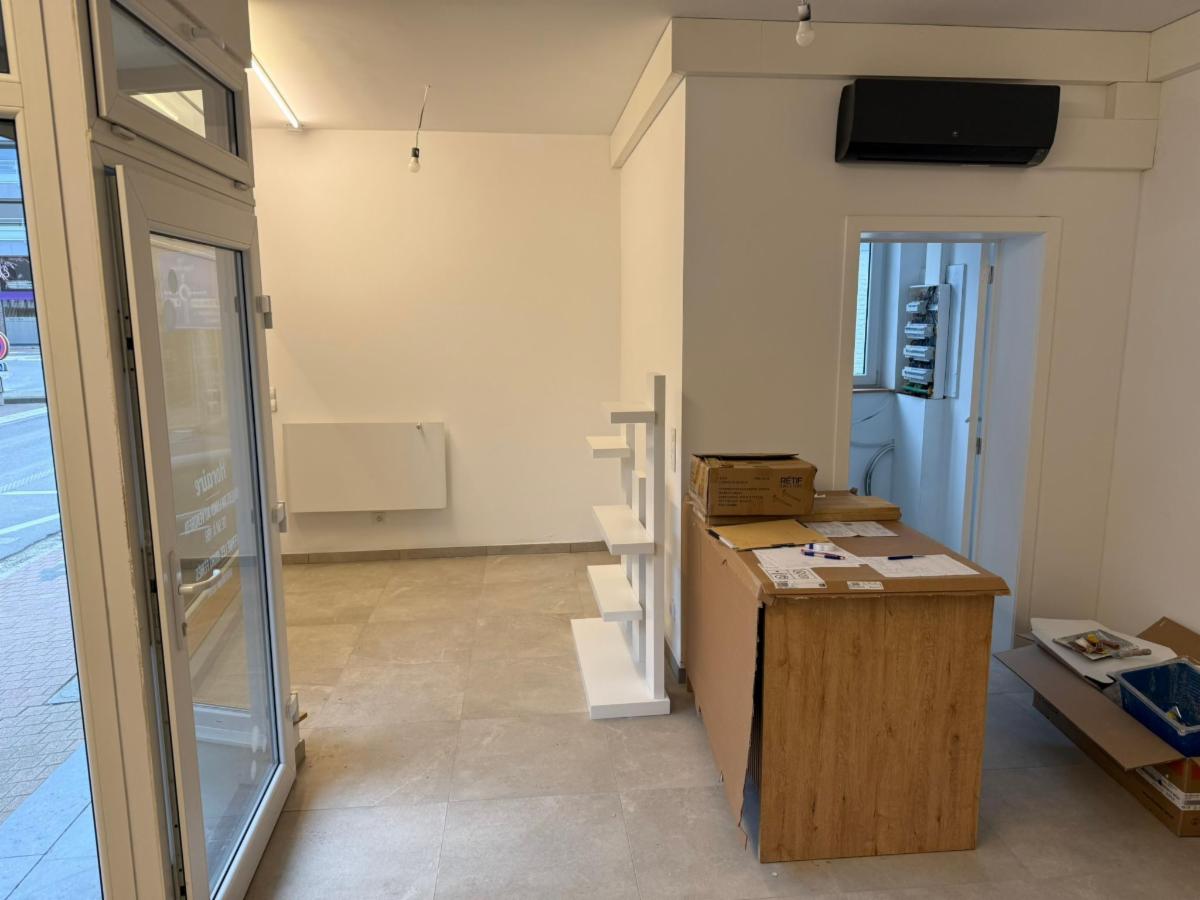 Dans un immeuble mixte idéalement situé sur un axe commercial fréquenté à FLERON, Avenue des Martyrs 216B, un rez-de-chaussée commercial entièrement rénové qui se compose comme suit : un bureau, deux locaux à usage de réserve, un local pour activité commerciale, une cour de 5,7 M², ainsi qu'une cave n° 5 de 9,5 M². Superficie totale : 76,3 M². Installation électrique conforme. Chauffage électrique. Compteurs individuels. Châssis DV en PVC - Bien libre d'occupation. R.C. : à déterminer. Le futur propriétaire bénéficiera d'un droit de jouissance privatif et exclusif pour l'installation de panneaux photovoltaïques. Charges communes inconnues à répartir entre les propriétaires des lots privatifs selon quotité. Quote-part de l'acquéreur dans les frais de l'acte de base, les parties communes particulières, ainsi que les frais de Géomètre : +/- 1.100 €.