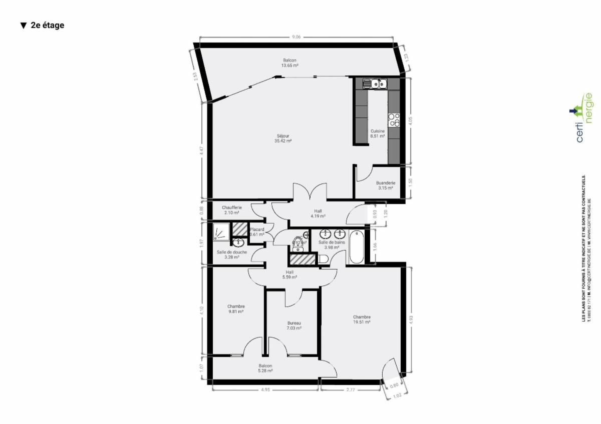 Idéalement situé au calme entre le centre et la gare. Appartement au 2ème étage/4 se composant comme suit : hall d'entrée, séjour avec cuisine ouverte et arrière cuisine, grande terrasse laissant apparaître le nez du Lion de Waterloo. Hall de nuit avec vestiaire, WC séparé avec lave-mains, remise avec chaudière, 1sdd, 1 chambre, 1 bureau, 1 grande chambre avec salle de bain et WC, les trois donnant sur la terrasse arrière. Les deux terrasses bénéficient d'un espace de rangement fermé. L'appartement compte également une grande cave. Chauffage individuel au gaz. PEB B. Vaste parking à l'avant. Opportunité rare dans cet immeuble, à visiter sans tarder.