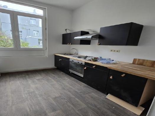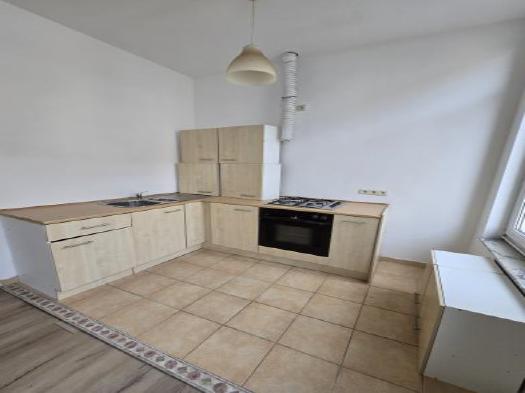 pièce de séjour ouverte sur une cuisine semi-équipée ,