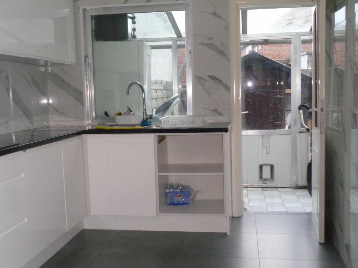 Au rez-de-chaussée : hall, living (salon), salle à manger, cuisine équipée, véranda,salle de bain (lavabo + wc + douche), cour + abris de jardin (bois)