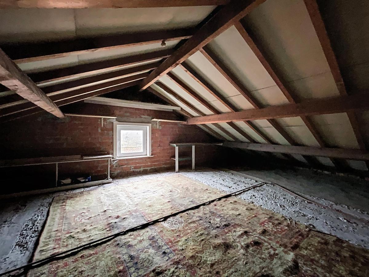 Cette maison comprend un hall d'entrée avec toilette, un salon lumineux avec cuisine ouverte et une vue splendide sur le jardin, une salle de bain équipée d'une baignoire et d'une douche, ainsi qu'une cave offrant un espace de stockage supplémentaire. À l'étage, vous trouverez deux chambres spacieuses, une buanderie et des toilettes séparées. De plus, la maison dispose d'un grenier avec de nombreuses possibilités d'aménagement.