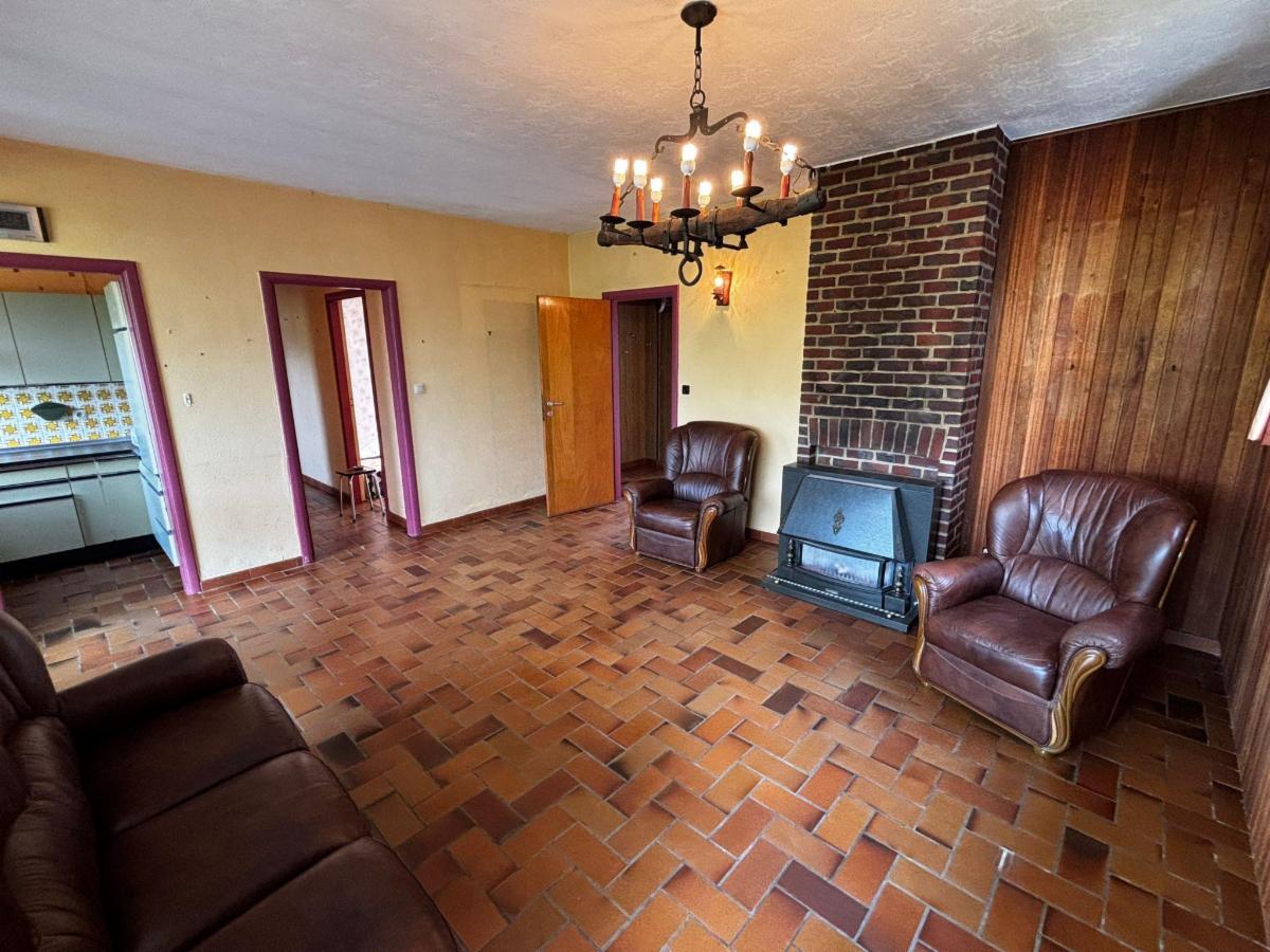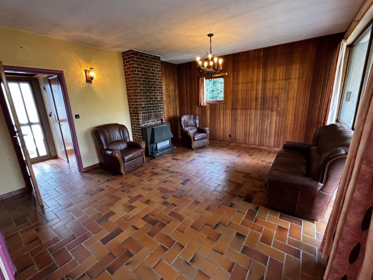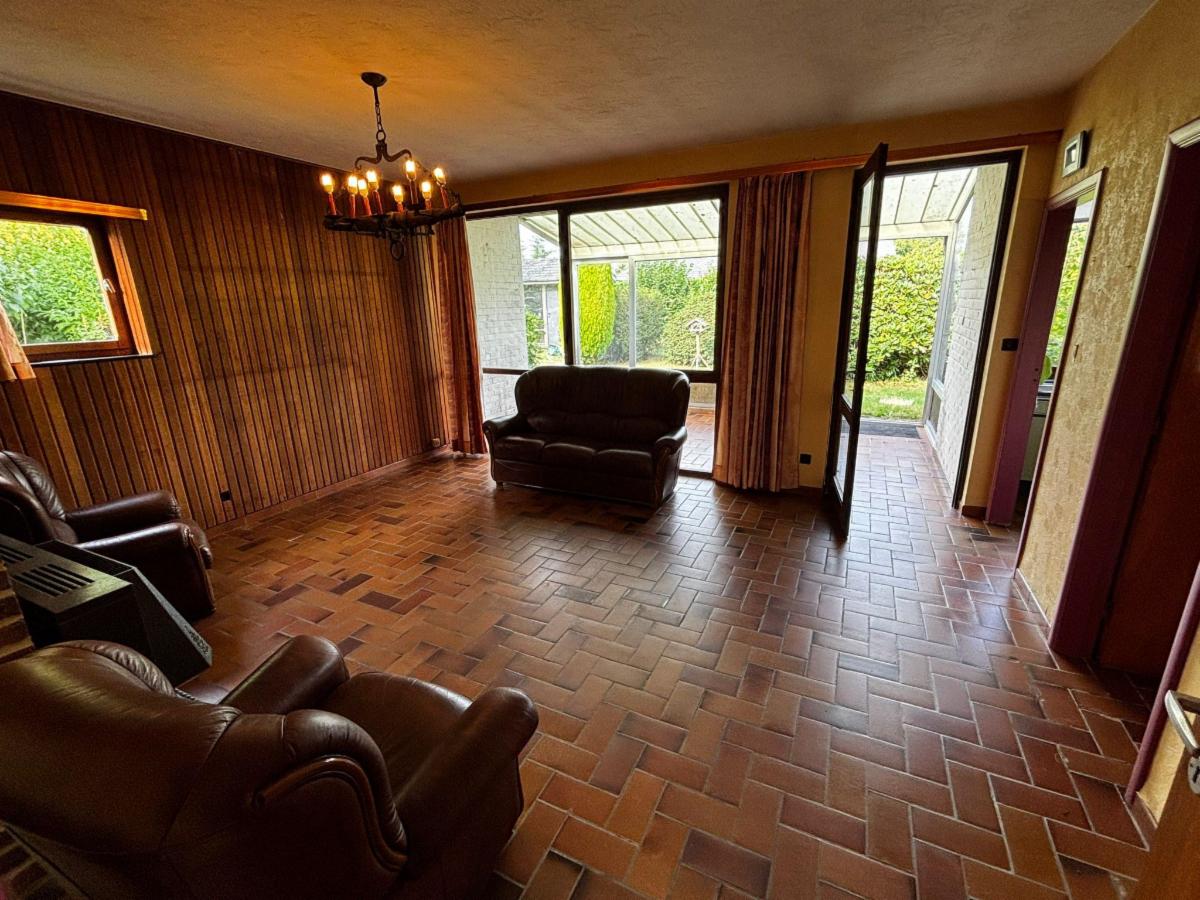 Belle maison trois façades avec garage et jardin située dans un quartier résidentiel comprenant au rez: hall, living, cuisine, SDB, WC, 2 chambres, bureau et véranda