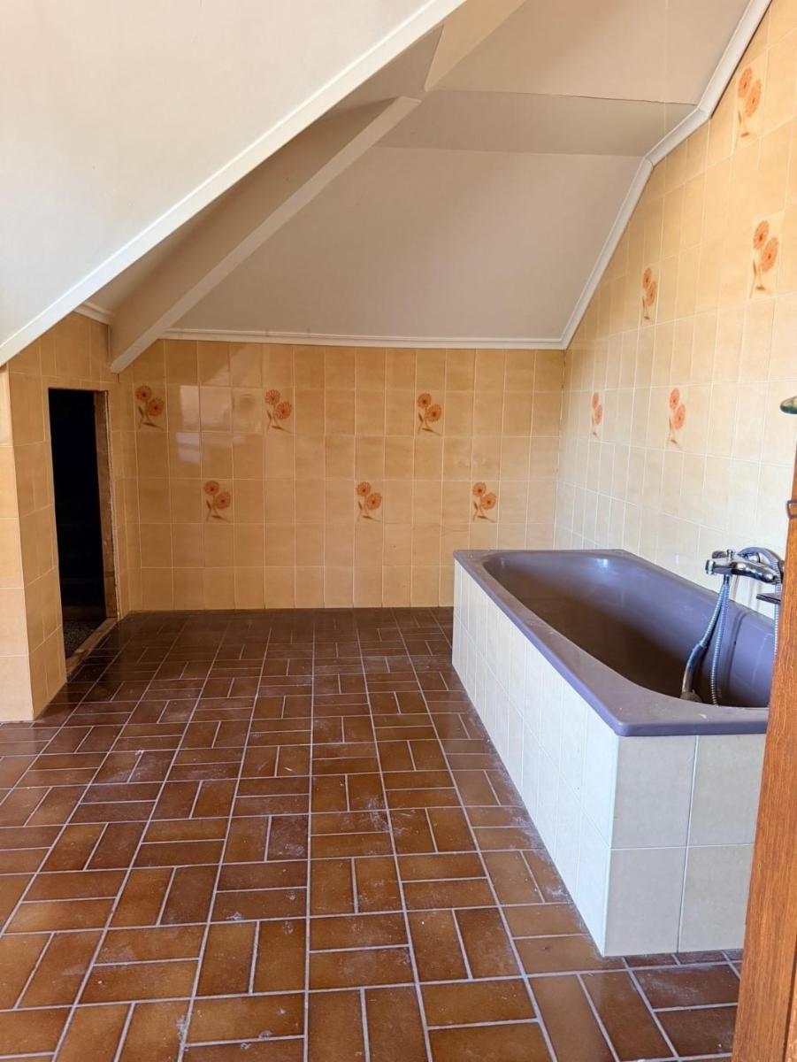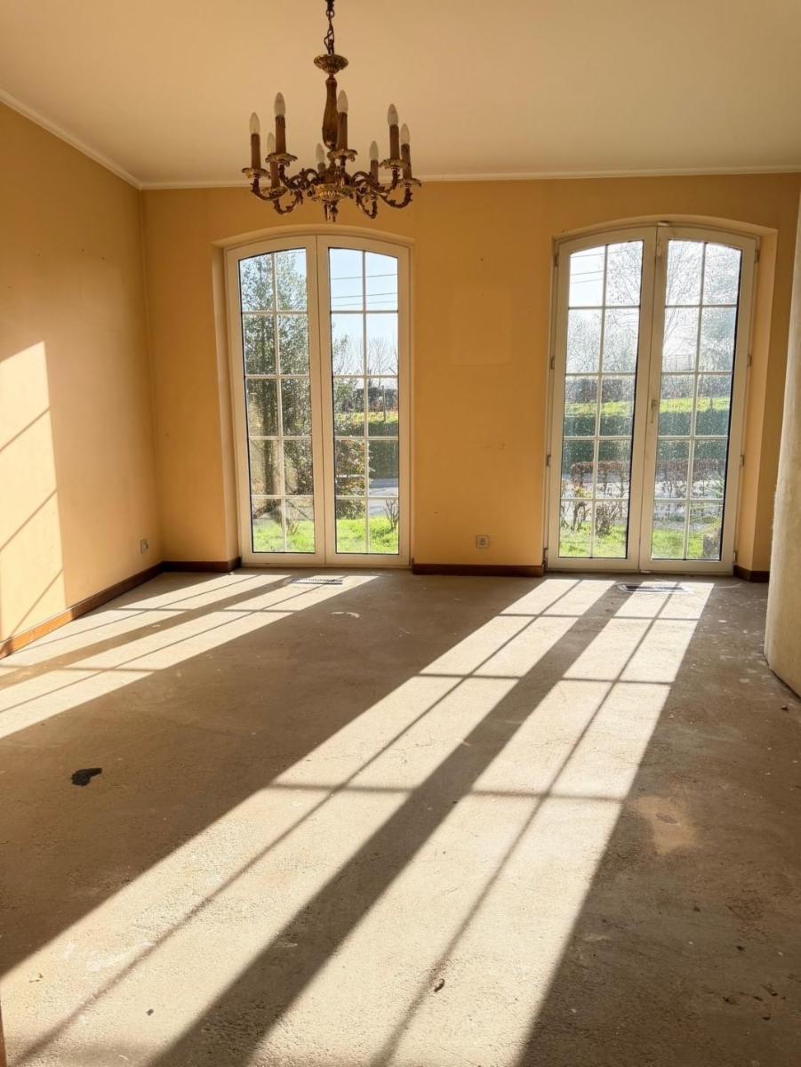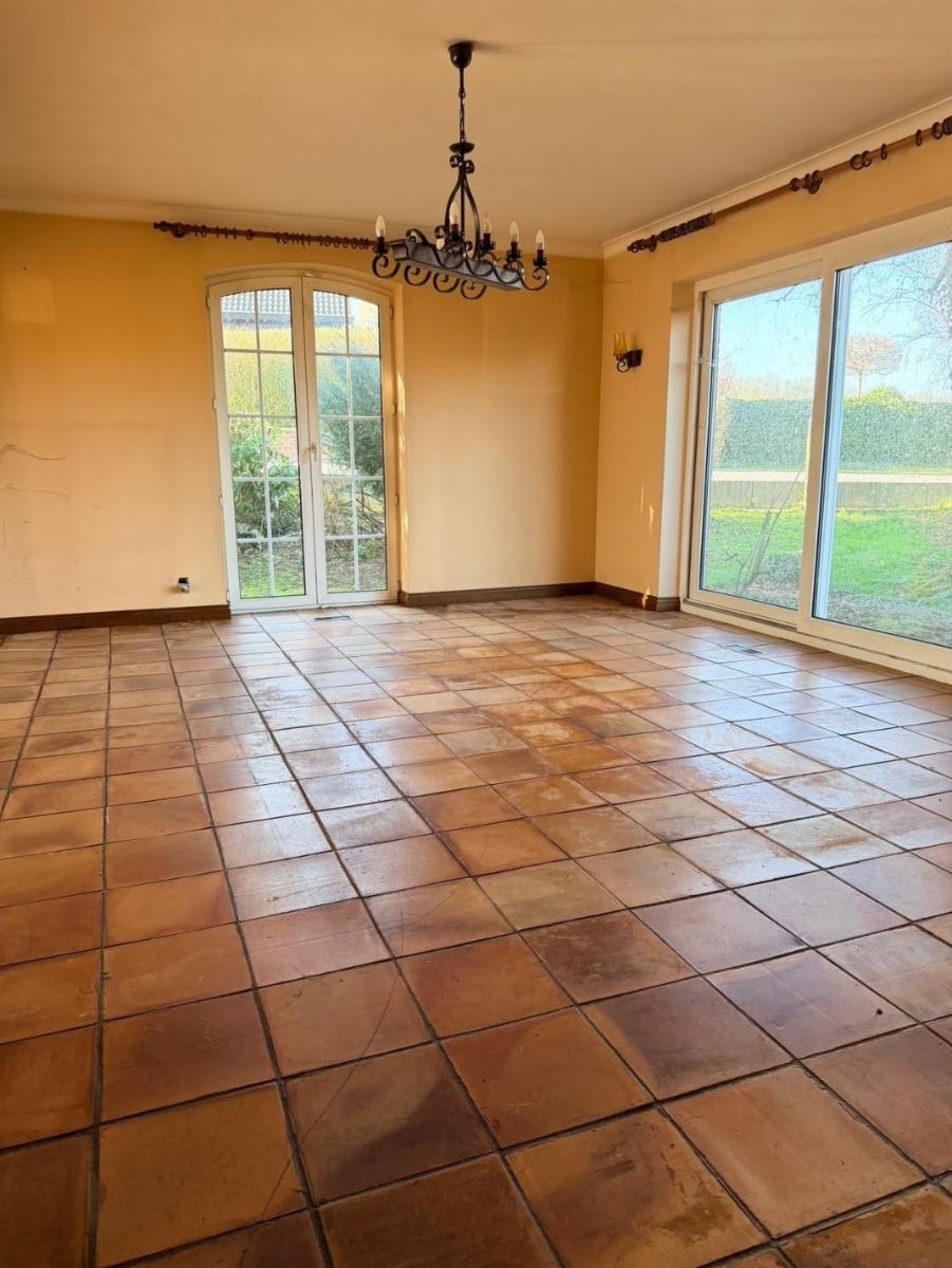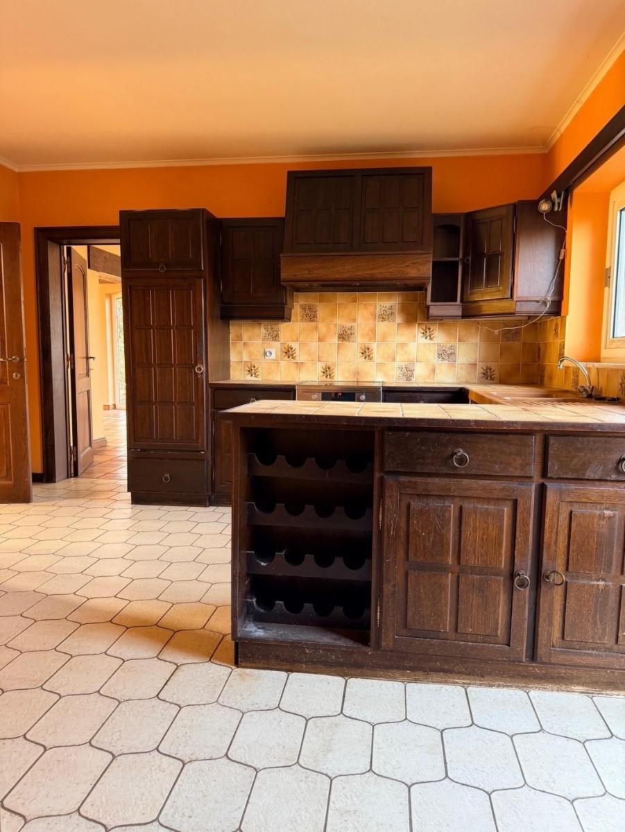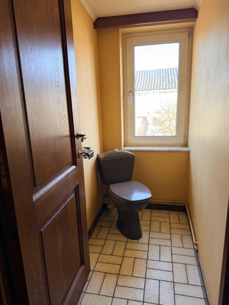 - Rez-de-chaussée : hall d'entrée avec escalier principal, hall secondaire avec WC séparé (+ lave-mains), une pièce pour profession libérale ou petit commerce comme salon de coiffure, d'esthétique... etc., bureau, cuisine semi-équipée (taque, micro-ondes, four, hotte, frigo, évier double), arrière-cuisine, living et garage.