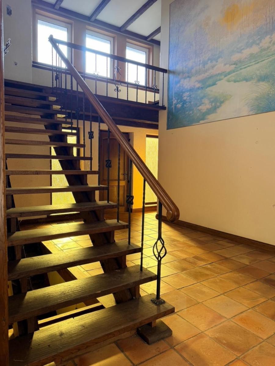 - Etage : palier avec belle mezzanine sur hall, bureau / biliothèque avec mezzanine sur living, 3 chambres, salle de bains (baignoire + évier double), WC séparé.