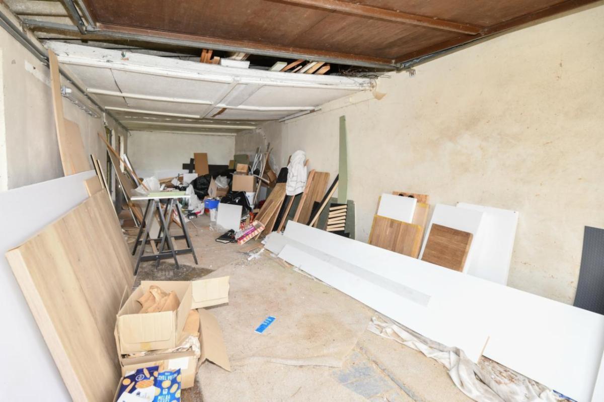 À l’extérieur : une terrasse (avec accès cuve mazout), un jardin, une chaufferie (chaudière, boiler, « espace machines »), un chalet de jardin, un garage, et deux remises.