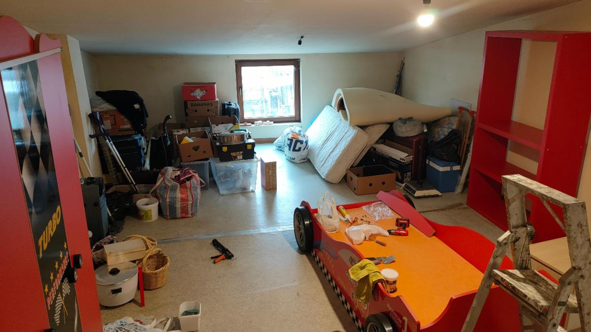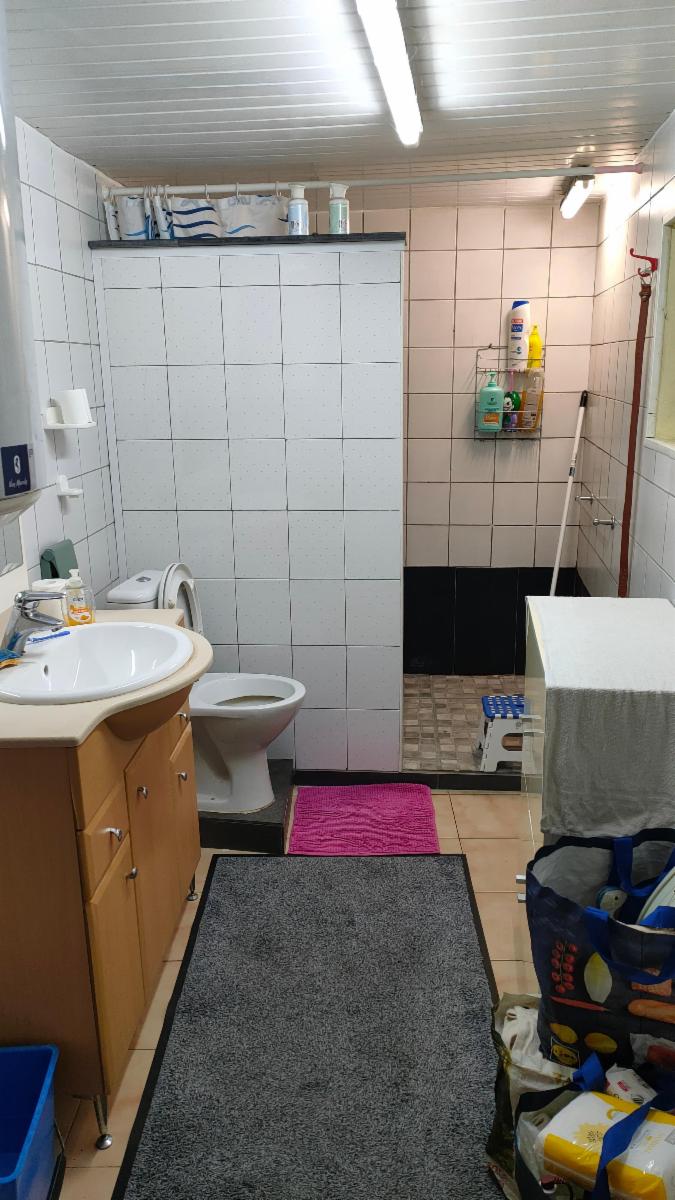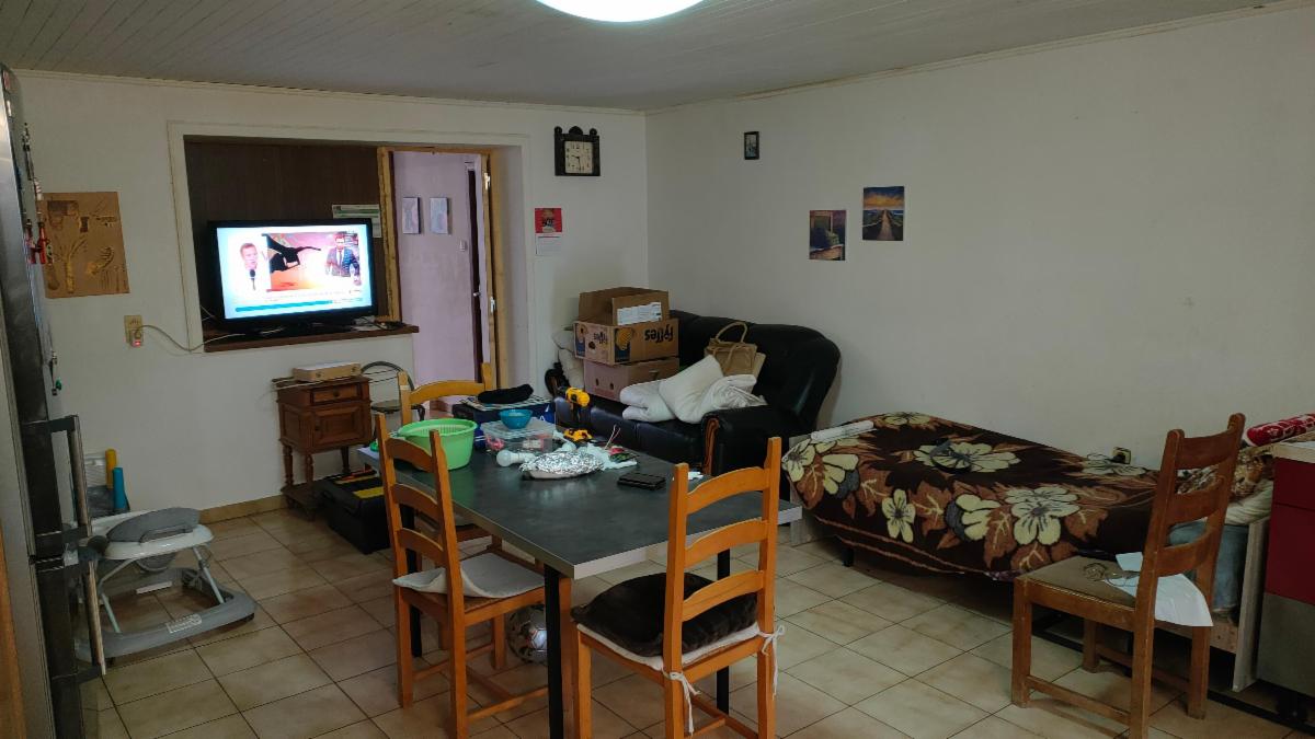 Au rez-de-chaussée : grand séjour ~ cuisine ~ salle de douche avec WC ~ véranda.