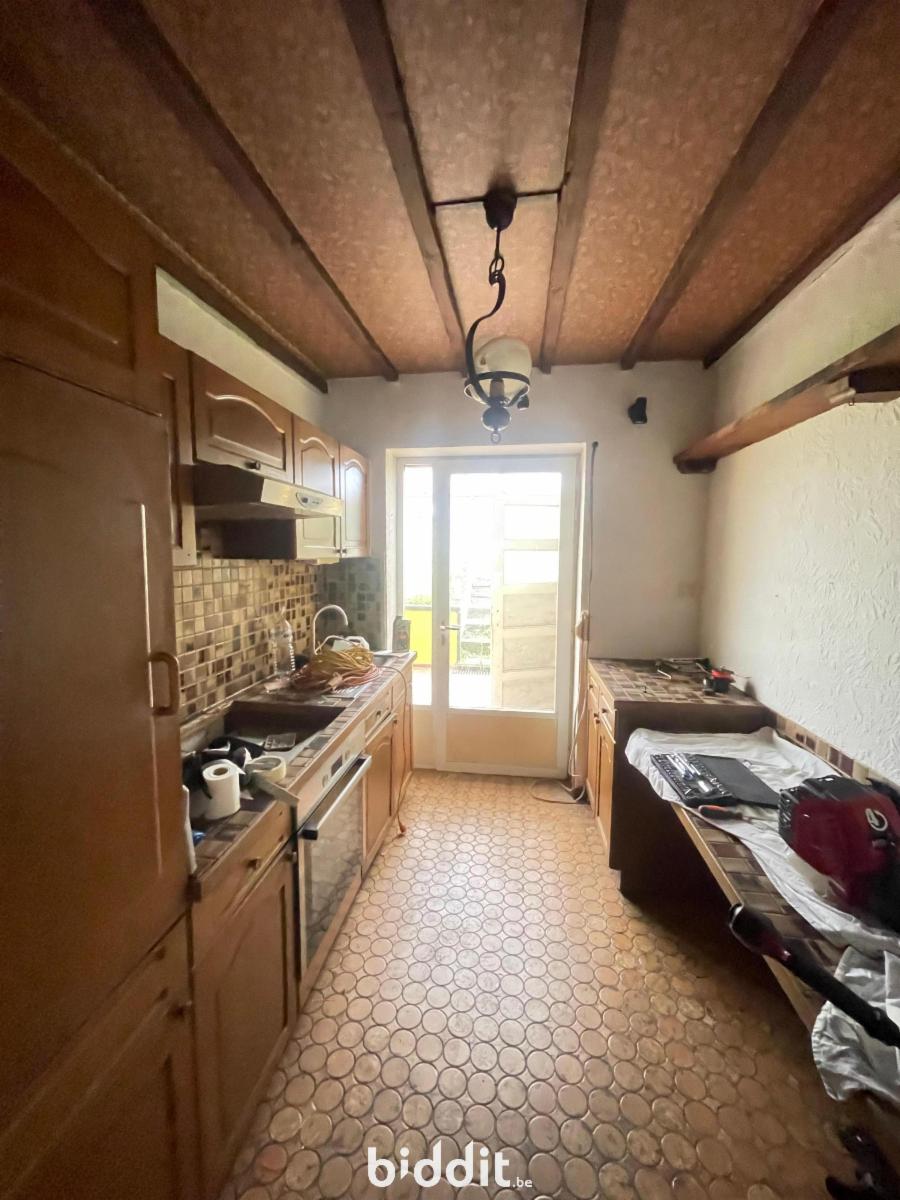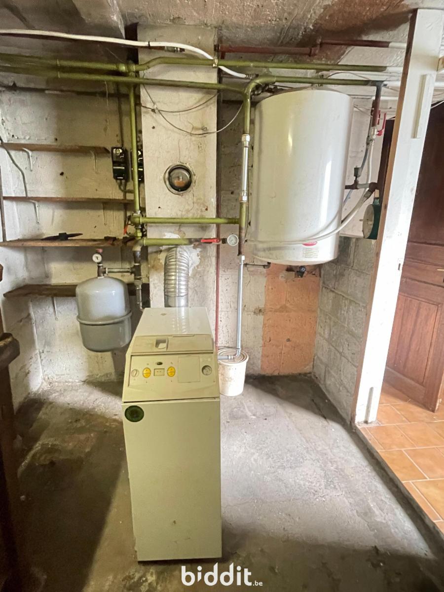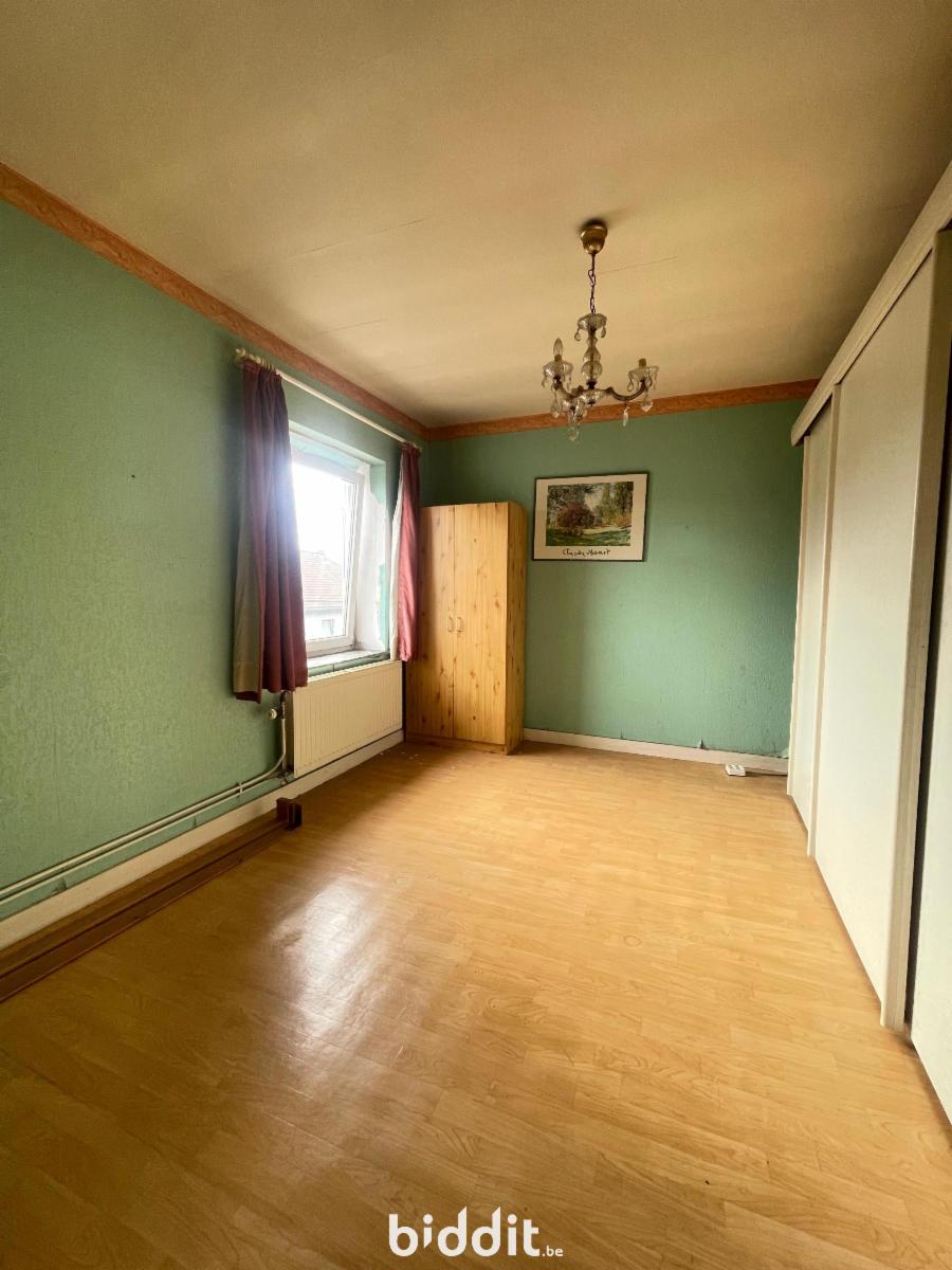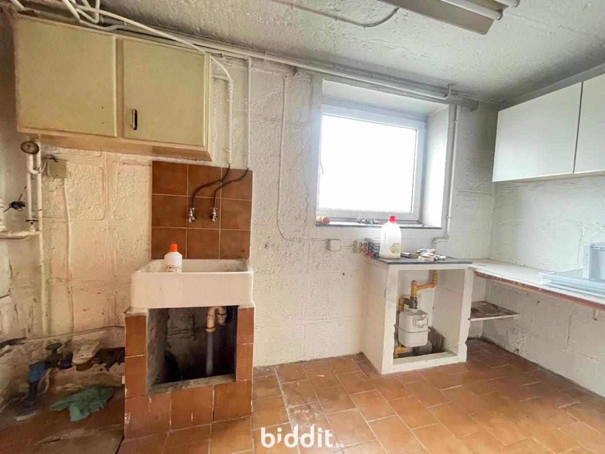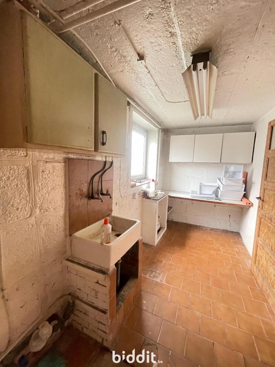 Dans un quartier résidentiel, bonne maison d'habitation à rafraichir composée au rez-de-chaussée d'un hall d'entrée, de deux caves et d'une buanderie. A l'étage, une cuisine non équipée donnant accès à la terrasse et au jardin, un grand séjour, un wc avec lave-main. Au deuxième niveau, trois chambres (+/- 16, 12 et 6m²) et une salle de bain. Parking aisé dans la rue. Chauffage central gaz.