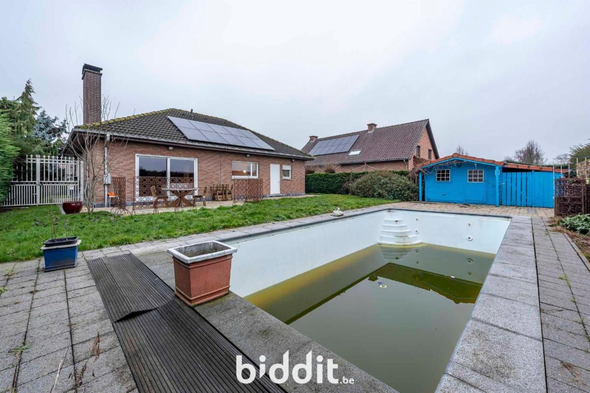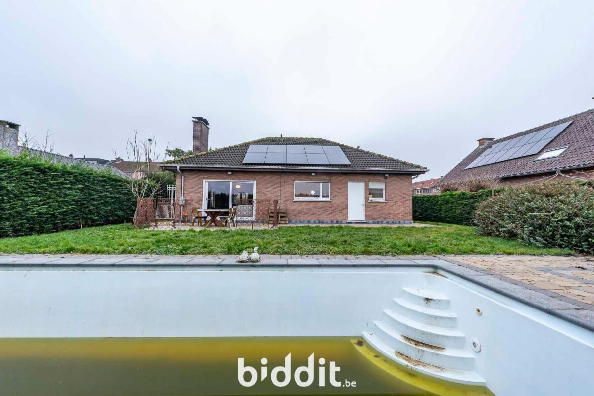 Bungalow prêt à emménager comprenant trois chambres à coucher, un garage et un grand jardin, situé dans un lotissement. La maison est équipée d'un chauffage central au gaz et de panneaux solaires sur le toit. Aucune rénovation énergétique n'est requise.