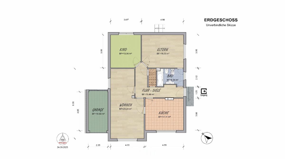 Diele, Flur, großes Wohnzimmer mit Essbereich, Küche, zwei Zimmer, sowie Badezimmer