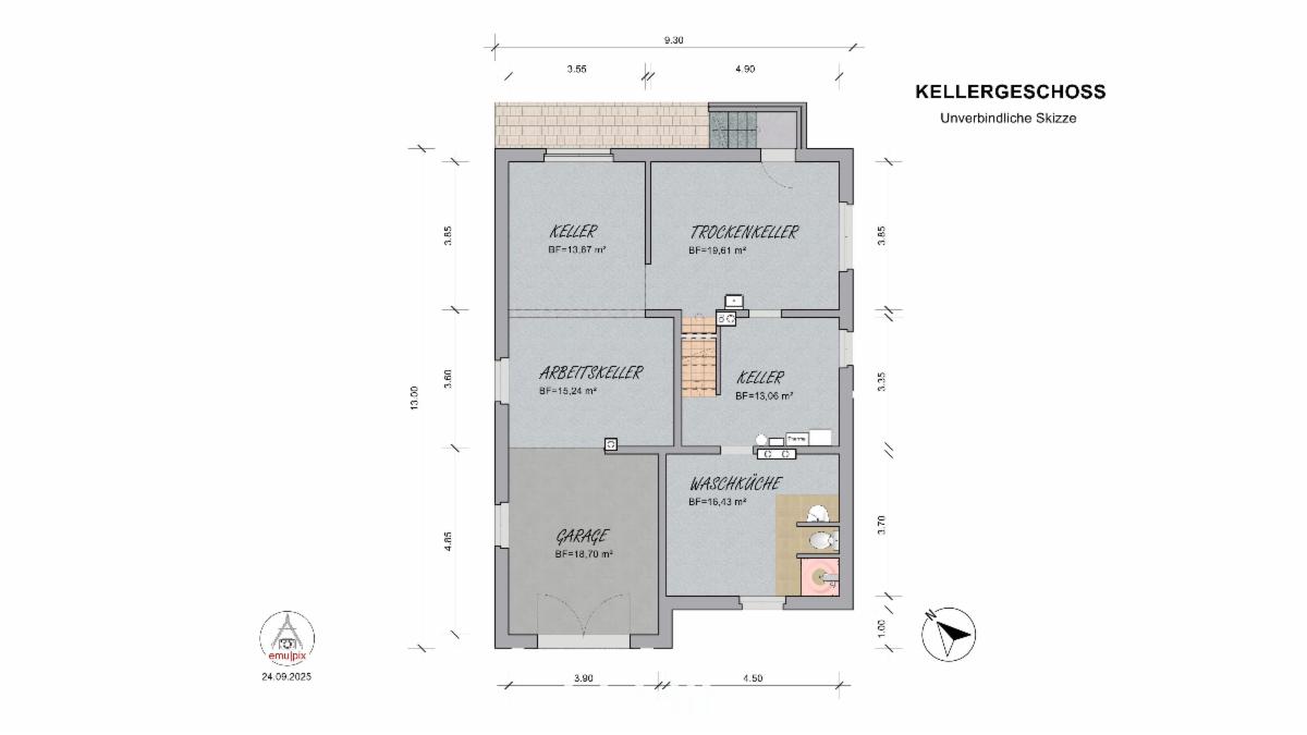 Voll unterkellert; Garage sowie fünf Kellerräume mit separater Dusche und WC