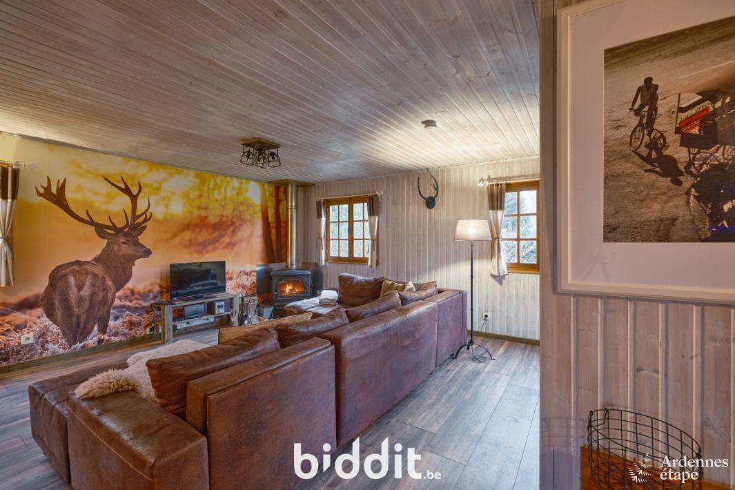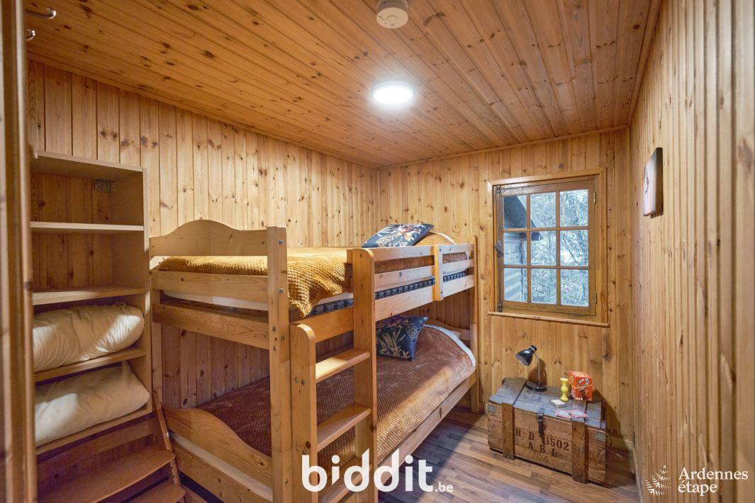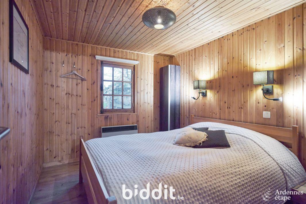 Ce chalet dispose de 2 chambres et d'une salle de bains et offre tout le confort nécessaire pour un séjour agréable. Le salon confortable est équipé d'un poêle à bois qui crée une ambiance chaleureuse pendant les soirées plus fraîches. Le véritable atout de ce chalet est sans aucun doute son sauna extérieur, où vous pourrez vous détendre après une journée riche en découvertes dans les Ardennes. Mobilier et équipement wellness inclus (sauna). Intéressés? Visites et informations : Monsieur GRYMONPON 0494/30.41.61 - luc@intueri.be