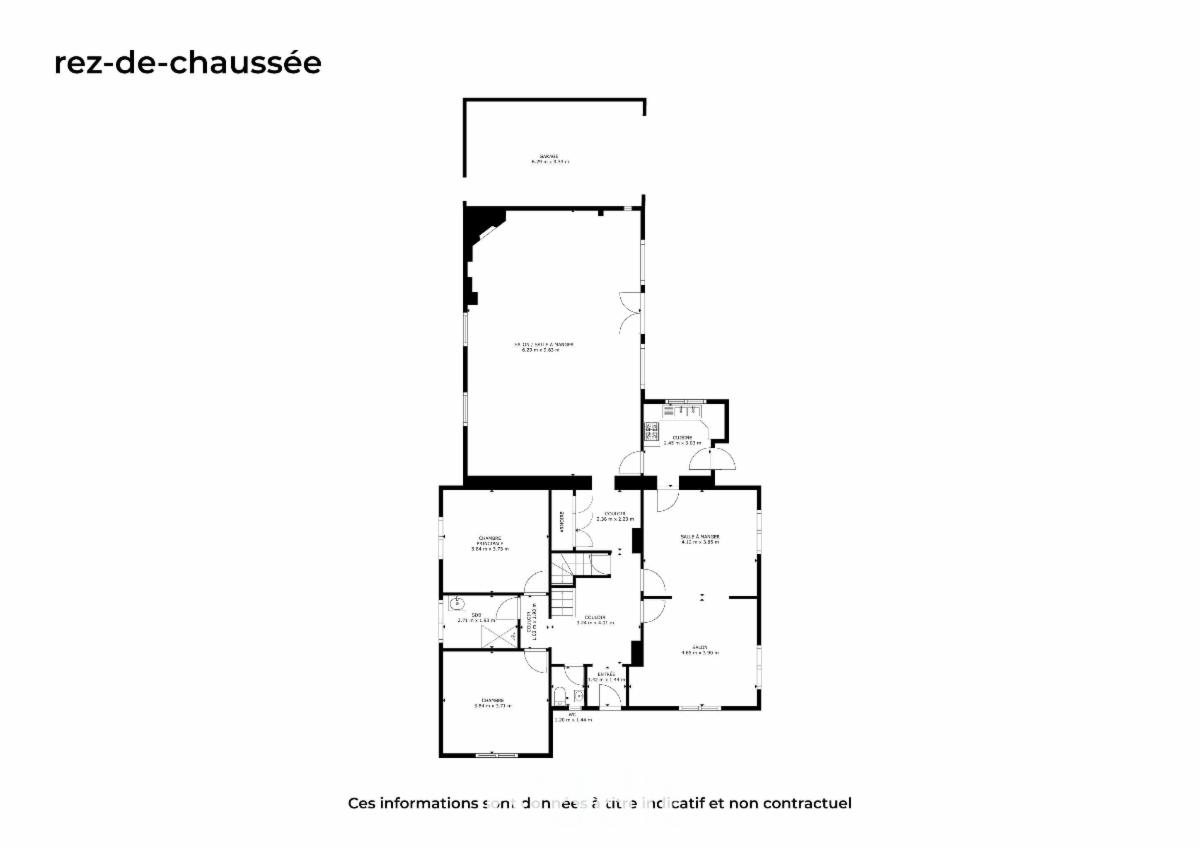 -Rez: un grand séjour, un salon, une salle-à-manger, une cuisine, 2 chambres, une salle-de-bain, un WC, un hall