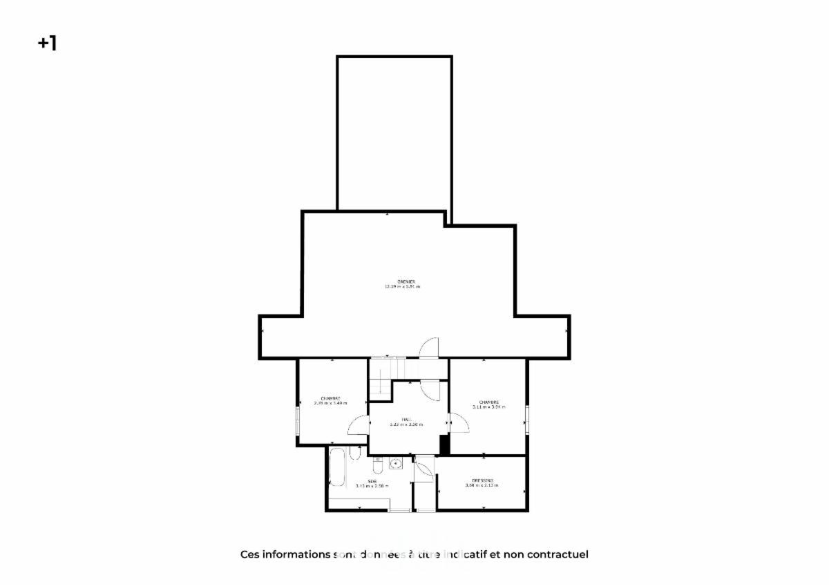 -Etage: 2 chambres, une salle-de-bain, un dressing, hall de nuit, grenier