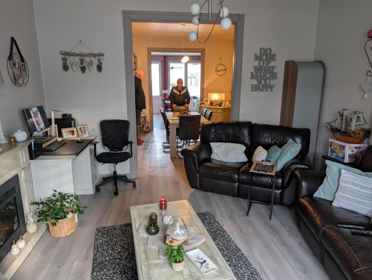 Charmante maison en briques 2 façades avec fenêtres en encorbellement sur deux niveaux. Agréables jardinets à l’avant et à l’arrière + garage séparé pour une superficie habitable d’environ 165m2 et une superficie totale de 1a 70ca.