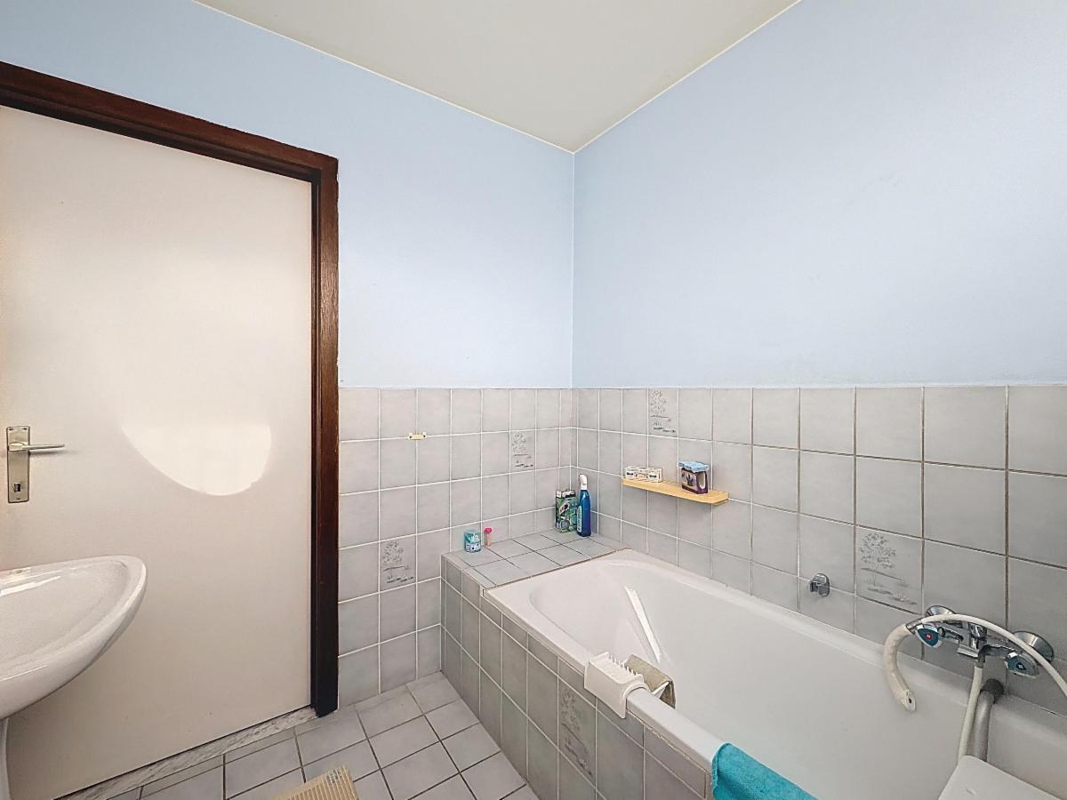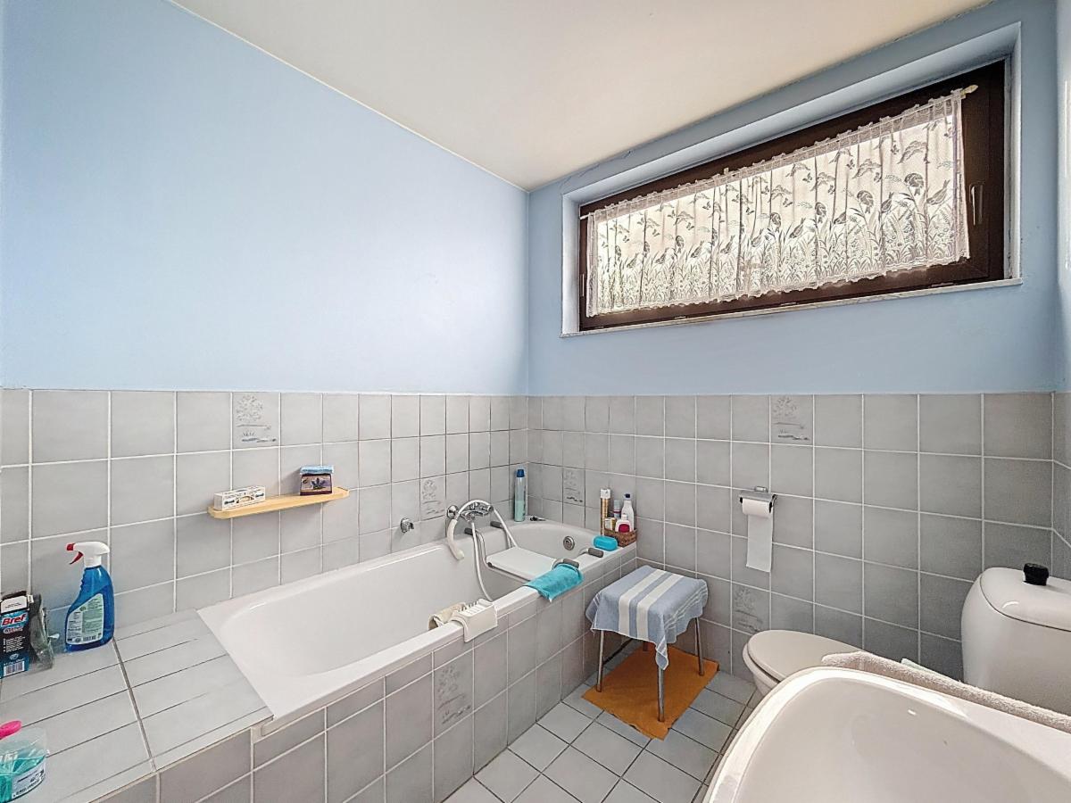 À l’étage, la maison dispose de trois chambres : deux grandes chambres et une troisième plus petite, parfaite comme bureau, chambre d’enfant ou espace hobby. La salle de bains est équipée d’une baignoire/douche et d’un WC.