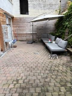 • Terrasse pavée accessible par la cuisine, menant au jardin par un escalier