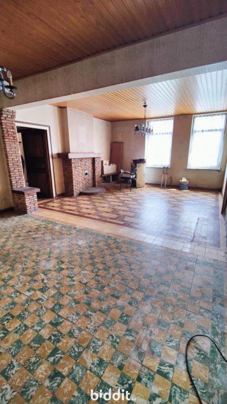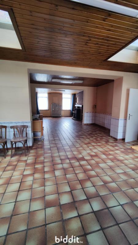 Ensemble immobilier comprenant une maison 4 façades avec un grand terrain, une salle de réception et plusieurs hangars (ancien garage) sur 30a 97 ca à Chièvres. Rez : Hall d'entrée - Côté droit de l'entrée: grand séjour, buanderie, sdb (bain, douche, lavabo) - Côté gauche de l'entrée: Cuisine ouverte sur un grand séjour - 2 wc - salle de réception avec coin bar - 1er étage: 3 chambres dont 1 avec dressing et sdb (douche + lavabo) - Grand grenier- Chauffage au bois et pellet dans le séjour - Lien BIDDIT: https://www.biddit.be/fr/search?lat=50.5860413&lng=3.7907921&municipalities=Chi%C3%A8vres&types=HOUSE&sortVal=&sortKey=searchcomponent.order.enddate&page=1&maps=false