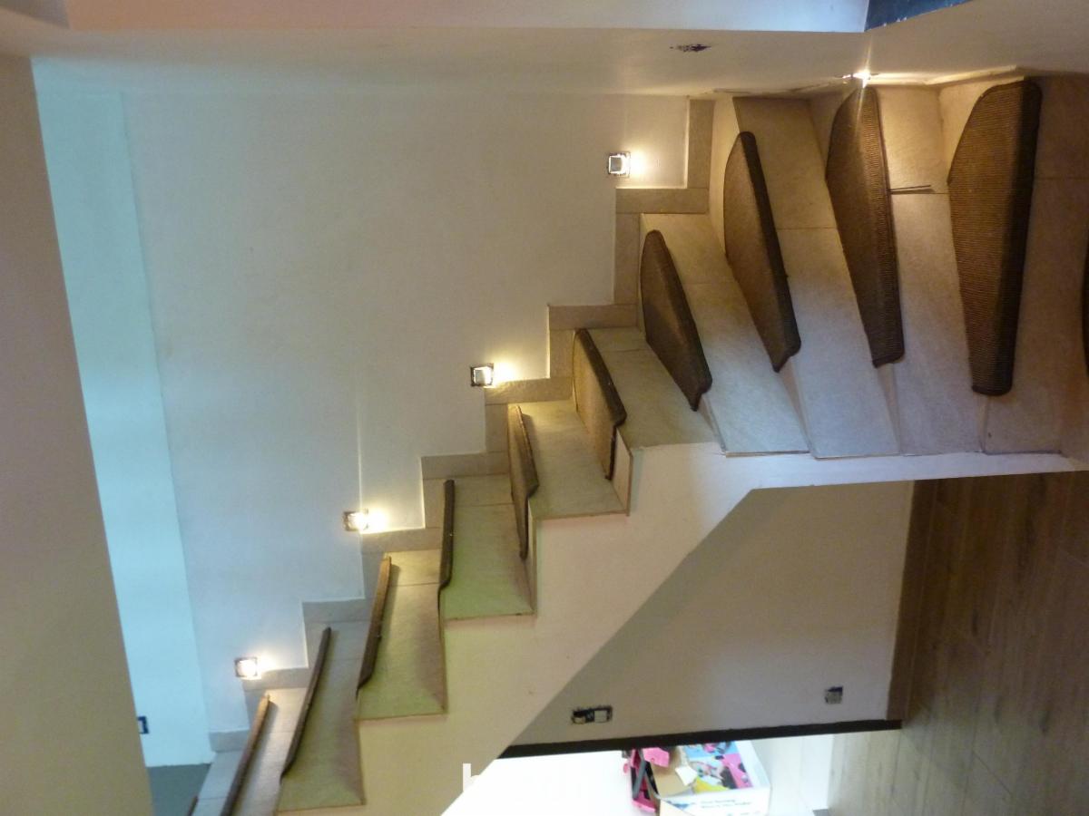 Garage +/-45 m² avec étage (mansardé) accessible via une échelle.