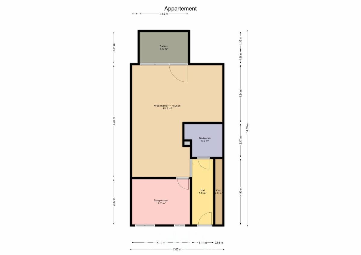 Ce bien comprend un séjour chaleureux avec cuisine ouverte, une salle de bains avec WC, une chambre ainsi qu’une belle terrasse.
