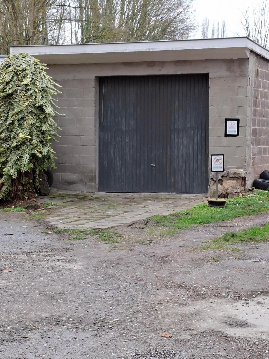 Garage fermé de 54 m² situé en recul de la route (environ 10 mètres). Porte métallique (2,5 X 2,5 m). Accessible via une cour commune. Sol en béton. Profondeur : environ 6,5 mètres. Possibilité de stockage ou garage pour 3 voitures.