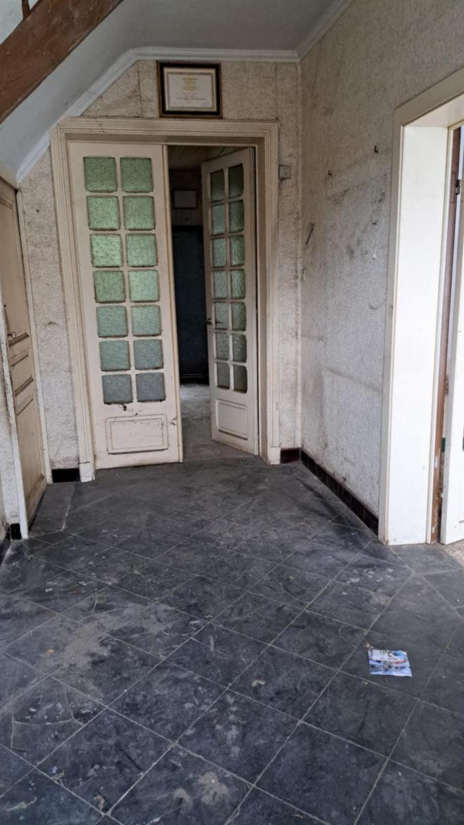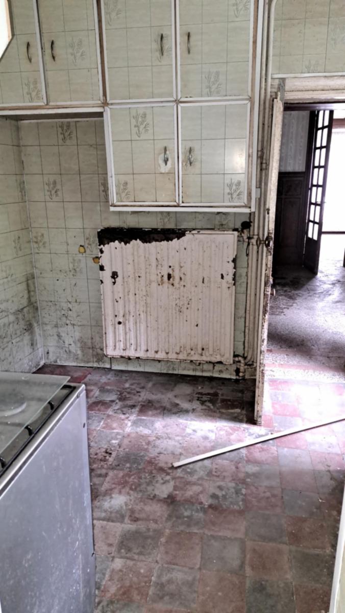 Ce bien se compose : au rez : hall d'entrée, salon, salle à manger/living, cuisine, wc; à l'étage: palier, 3 chambres (dont 2 communicantes), débarras, salle de bains, (baignoire+évier); grenier : accessible par un escalier, possiblité de 2 chambres supplémentaires. Caves. Beau jardin boisé et passage latéral. Chauffage central mazout (chaudière hors service). Châssis en PVC et en bois. Travaux à prévoir. Superficie : 18 a 67 ca - RC: 605 €