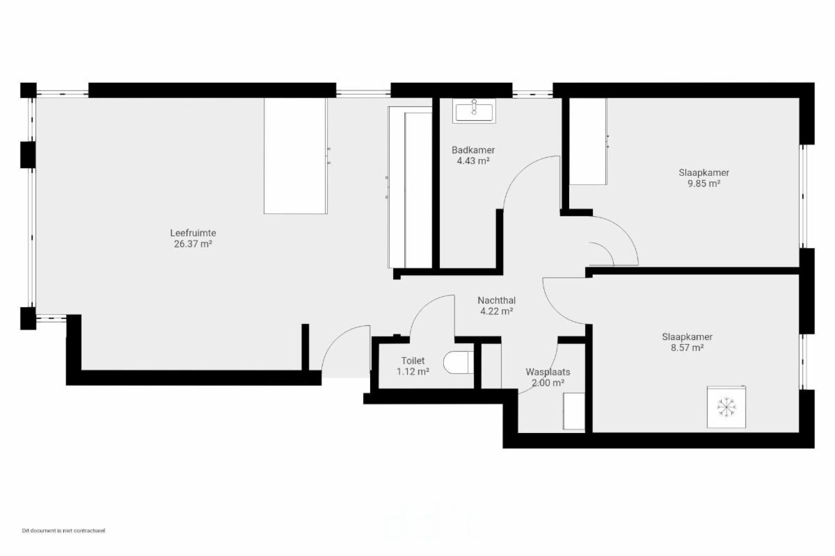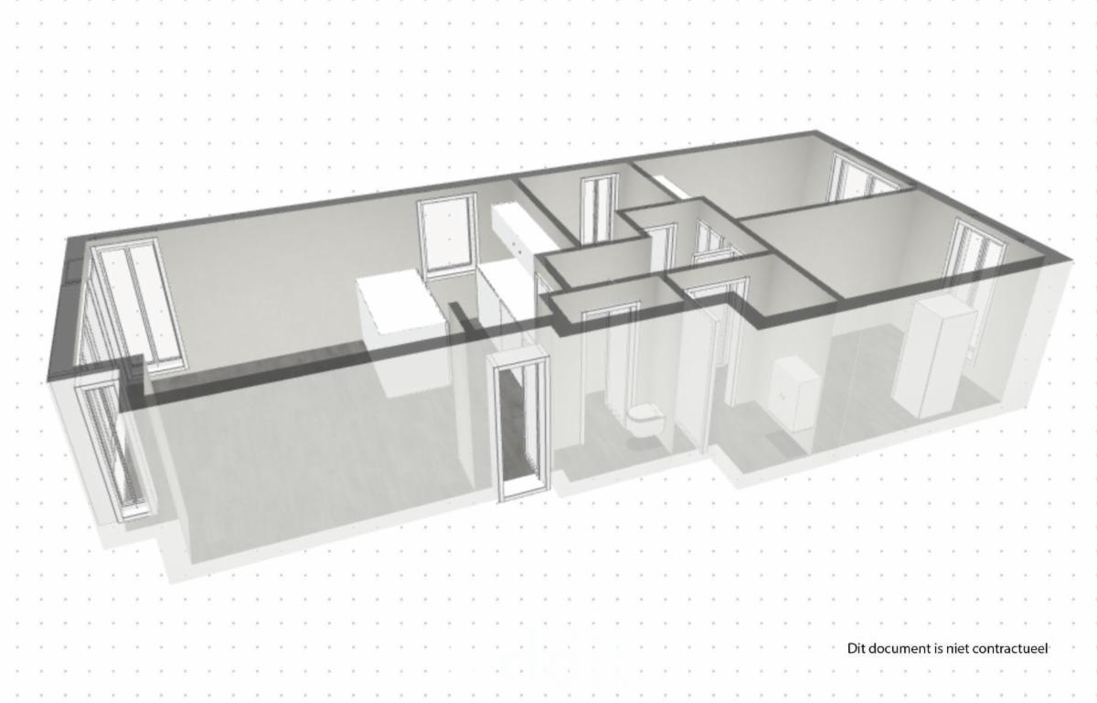 Het APPARTEMENT 3 LINKS, "6A bus 3", omvattende: leefruimte, keuken-eetruimte, nachthal, badkamer, slaapkamer 1, slaapkamer 2, berging/CV-ruimte, WC, terras (voor-en achterzijde);