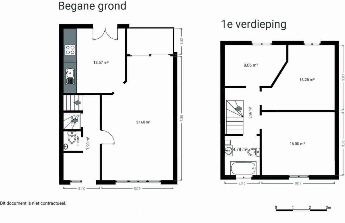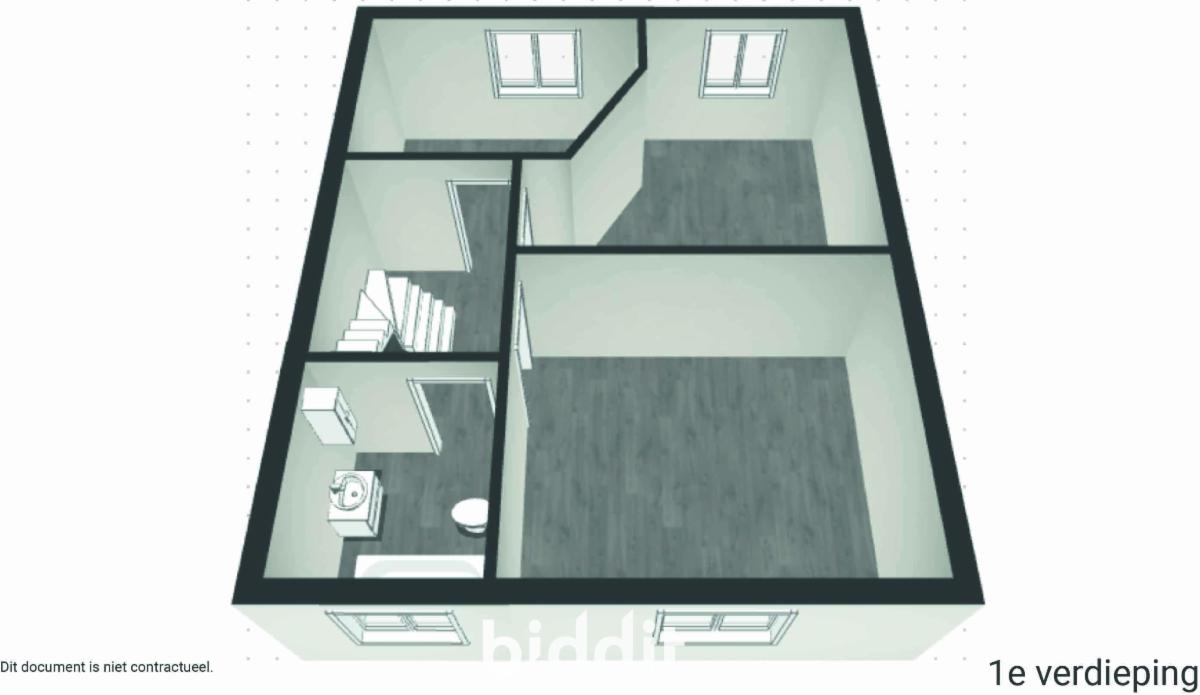 Au premier étage, il y a 2 chambres, une salle de bains et un débarras/petite chambre.