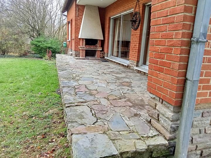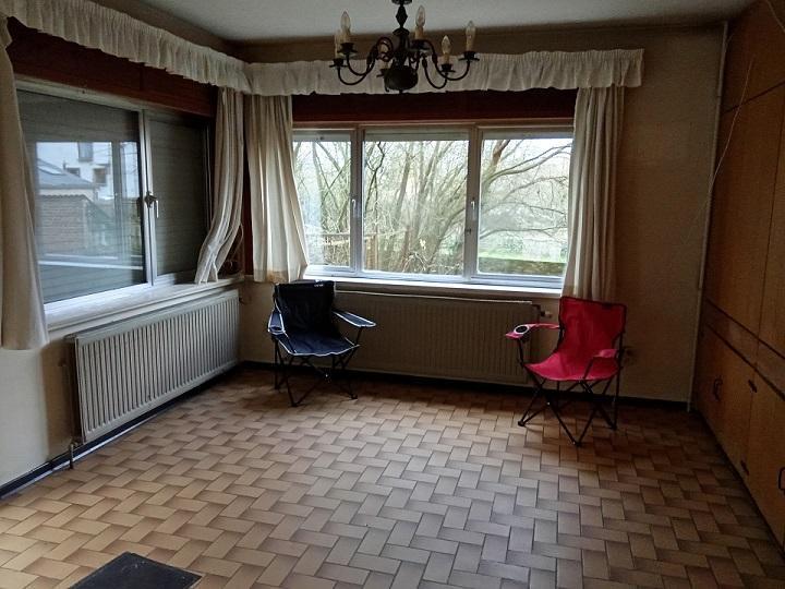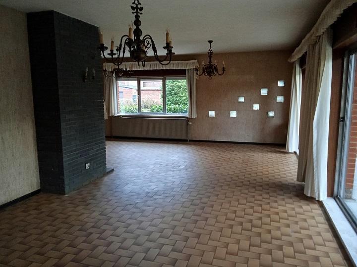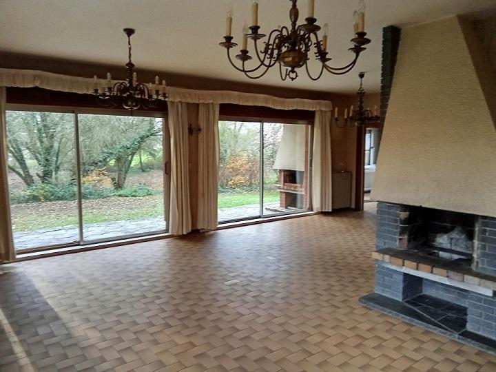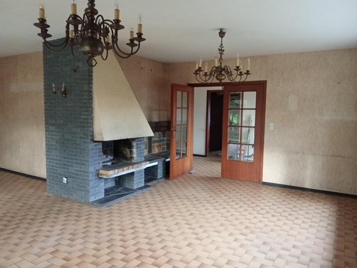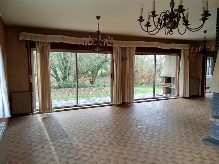 • Hall d'entrée, WC, vaste living (salon-salle à manger), petit séjour, cuisine, terrasse et jardin.