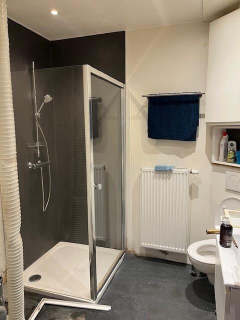 Sur l'axe reliant Pepinster à Verviers, un immeuble avec caves, actuellement divisé en deux logements (travaux à réaliser/terminer) : un studio au rez-de-chaussée, jouissant d'une petite cour, et un logement aux étages (triplex), avec terrasse, jardin, deux chambres et deux greniers aménageables.