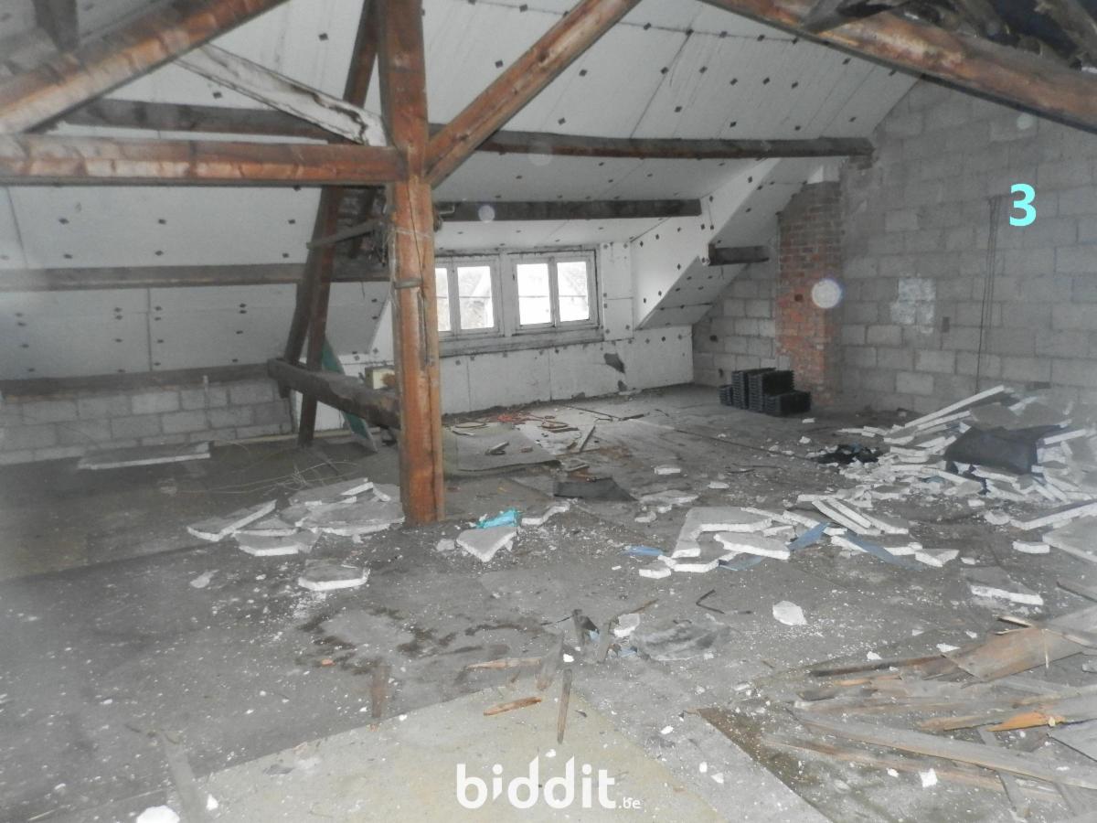 3: Appartement situé au 1er et 2ème étage composé de: 1 pièce non-aménagée, hall, cuisine, séjour, 4 chambres et 1 salle de bains. Les pièces au 2ème étage peuvent être aménagées en pièce de vie mansardées. Chauffage central au mazout. Libre.