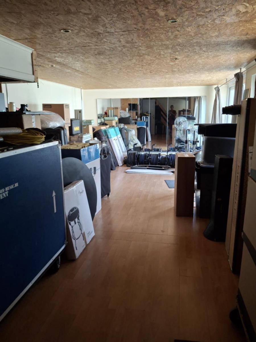 - Côté rue : salon/cuisine semi-équipée, salle de douche, chambre. Sol Quickstep et châssis PVC blanc récents.