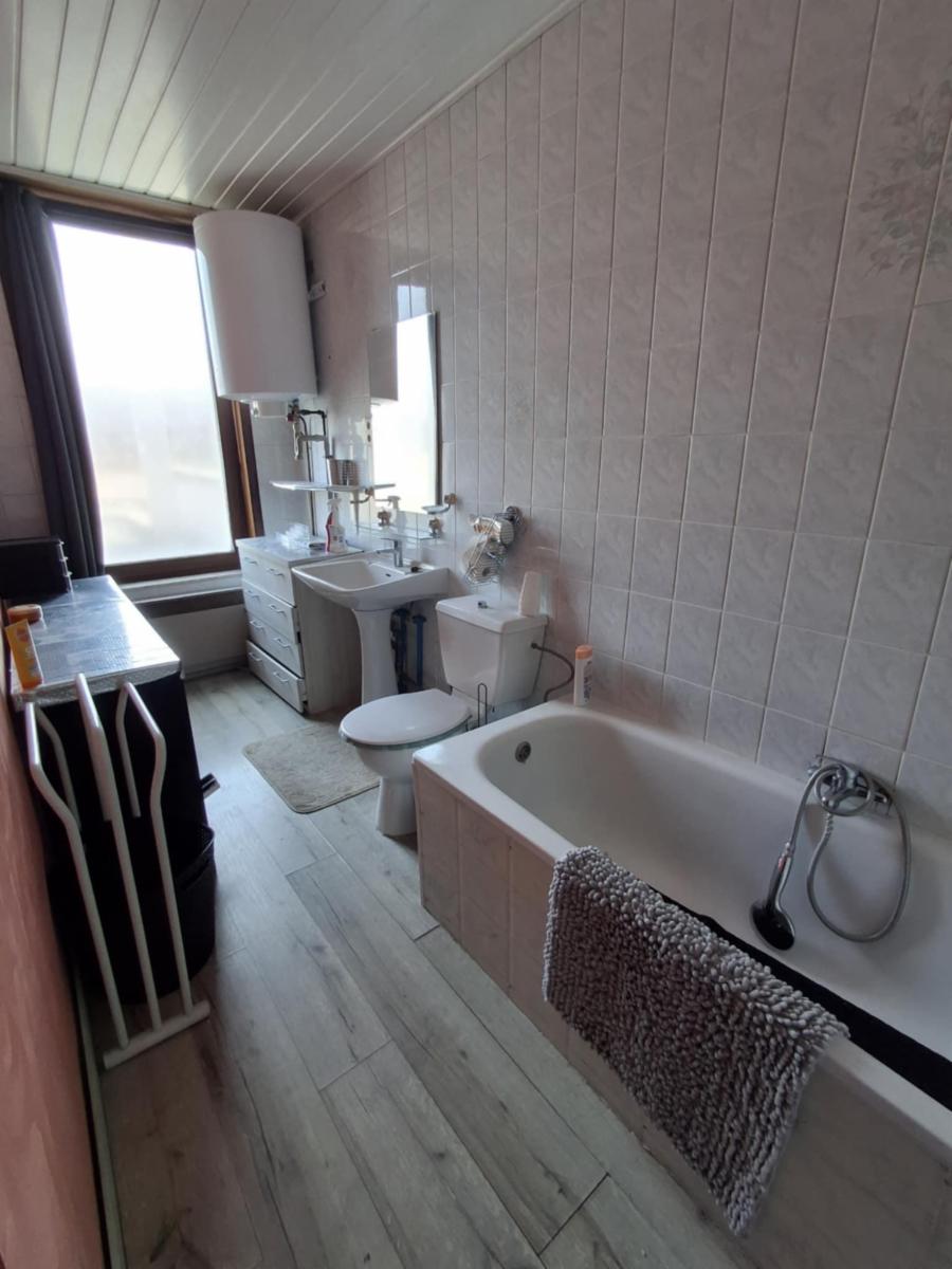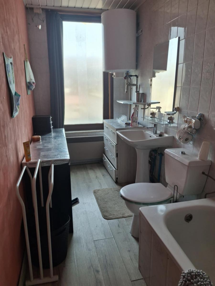 - Appartement datant de 1996 : hall/couloir, 1 chambre, salle de bains (baignoire, lavabo), salon/salle à manger, cuisine ancienne non équipée. Chauffage électrique dans le salon. Sol Quickstep. Compteur privé au rez dans le sas d’entrée. Châssis côté rue en simple vitrage alu, côté cour en double vitrage bois.