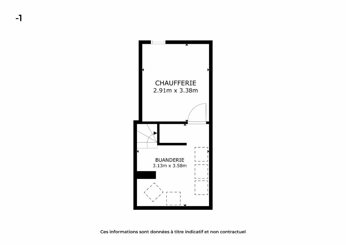 Le sous-sol comprend une buanderie de 11 m² et une chaufferie de 9 m², offrant des espaces pratiques pour le rangement et l’entretien.