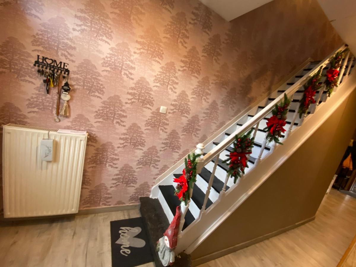 Rez: hall, salon avec poêle pellets, salle à manger, cuisine équipée avec lave-vaisselle, taques induction, hotte, four, évier (sans frigo) et poêle pellets, wc.