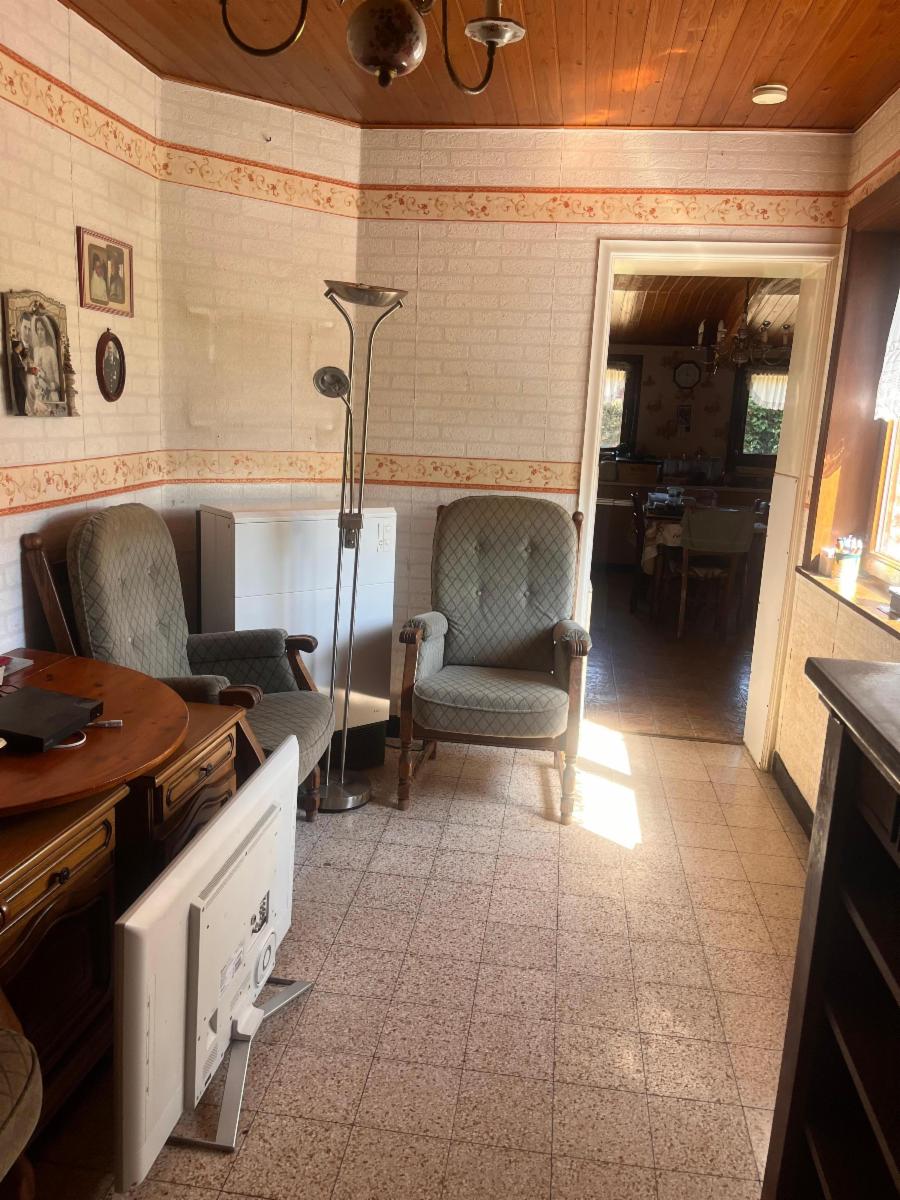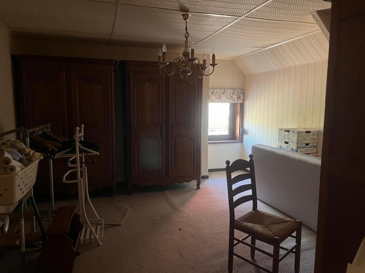 Maison sise sur et avec 8 ares 10 centiares, comprenant: un séjour, un petit salon, une cuisine équipée (2 éviers, lave-vaisselle, taques, hotte et four), une chambre, une salle de bains avec baignoire/douche et lavabo, un garage et WC - à l'étage: 2 chambres et petits greniers - une cave sèche - une terrasse avec remise et jardin, un passage latéral avec parking - double vitrage - chauffage pellets + électrique accumulateur - compteur bi-horaire - citerne à eau de pluie avec pompe - RC: 442,00 €
