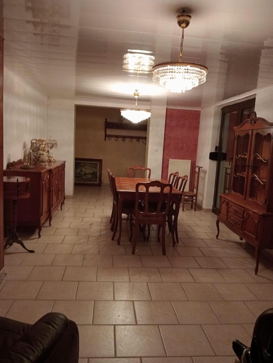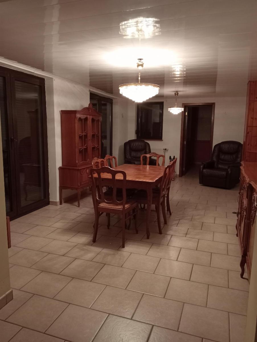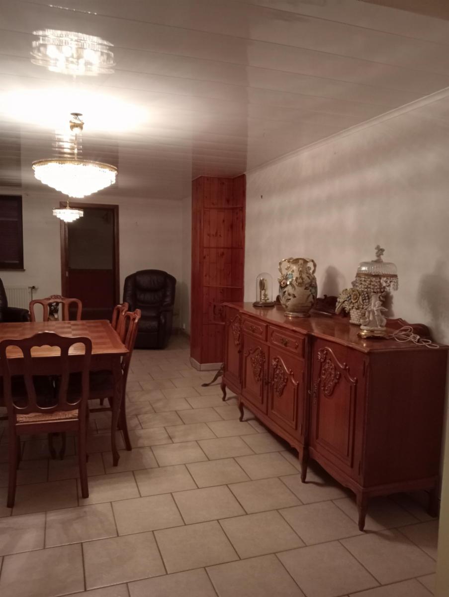 Maison trois façades de plain-pied avec garage et jardin, comprenant: véranda, cuisine équipée, living, deux chambres, salle de bains, grenier aménageable, remises, terrasse, chauffage central au gaz (cuve à gaz (location) dans le jardinet avant - chaudière ancienne à l'étage), volets manuels, fosse septique.