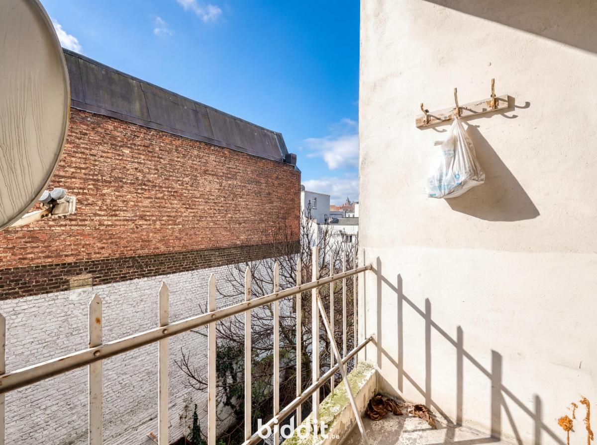 Comprenant : living, 1 chambre, sdb avec wc, cuisine, terrasse, cave C7 au sous-sols. R.c.n.i. 507€. Libre d’occupation. Zone d’habitation. PEB : E-/262. Contr. électr. non conforme. Visites : samedis 25/4, 02/5 et 9/5/2026 de 13-15h et mardis 28/4, 5/5 et 12/5/2026 de 10-12h.